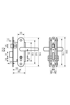Предназначен для установки в деревянные двери толщиной 40-50мм, правого и левого открывания.