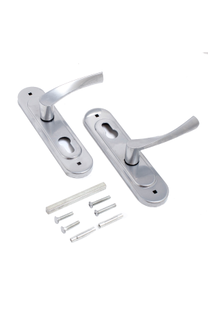 Ручка на планке для замка с межосевым расстоянием 55мм. Материал ручки - алюминий, планки - сталь. Крепление - стяжки.