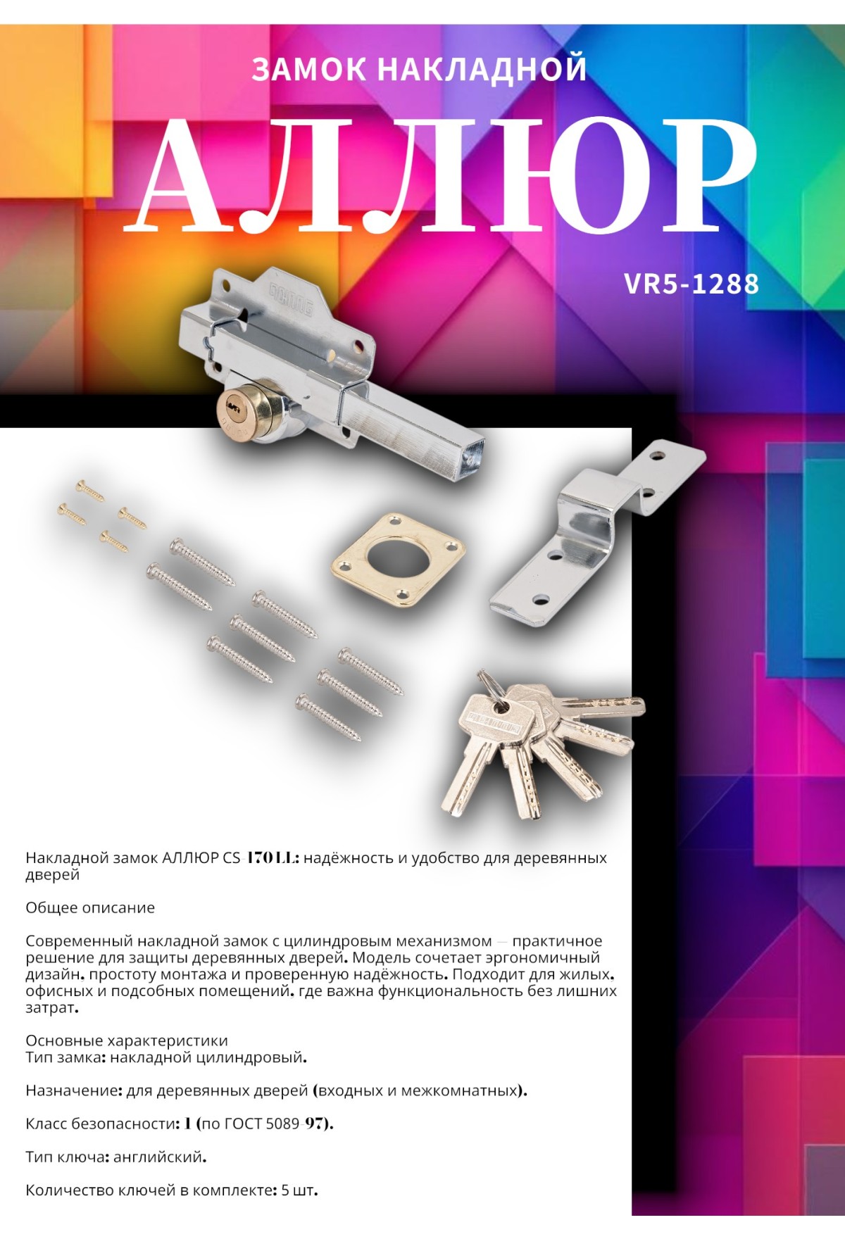 Тэги: АЛЛЮР CS-170 LL Замок накладной (10), VR5-1288, Аллюр, ✹ Дверные замки, механизмы, ✹ Замки накладные для деревянных дверей, ✹ Дверная фурнитура