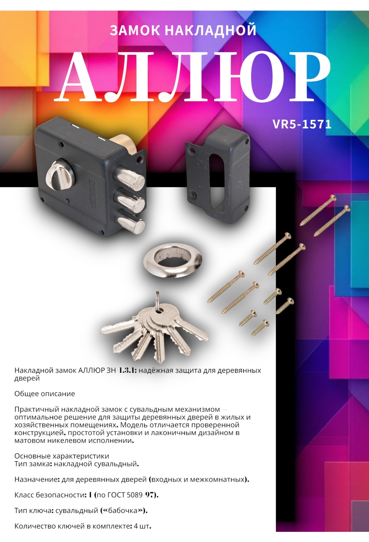 Накладной замок АЛЛЮР ЗН‑1.3.1: надёжная защита для деревянных дверей