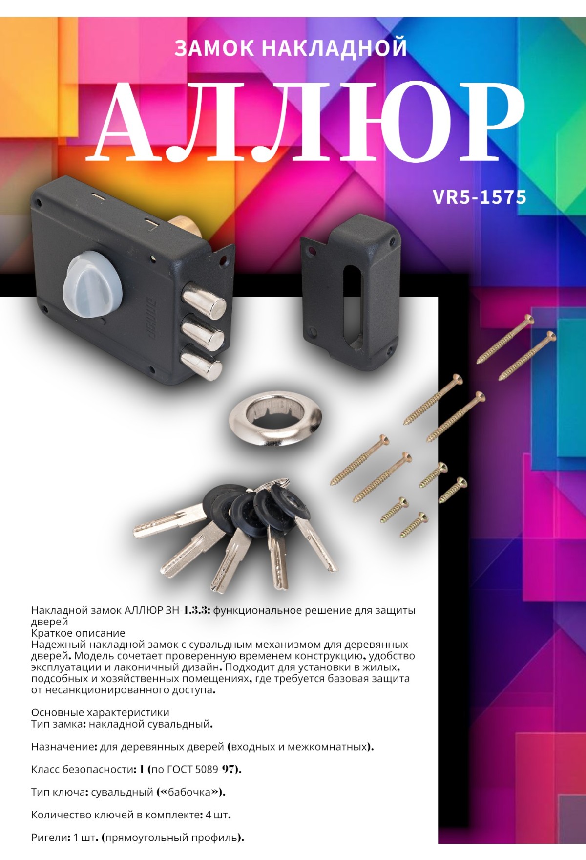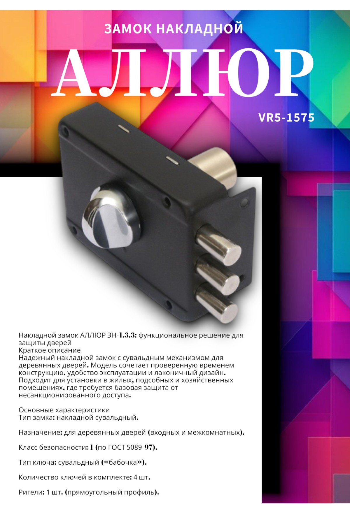 Накладной замок АЛЛЮР ЗН‑1.3.3: функциональное решение для защиты дверей