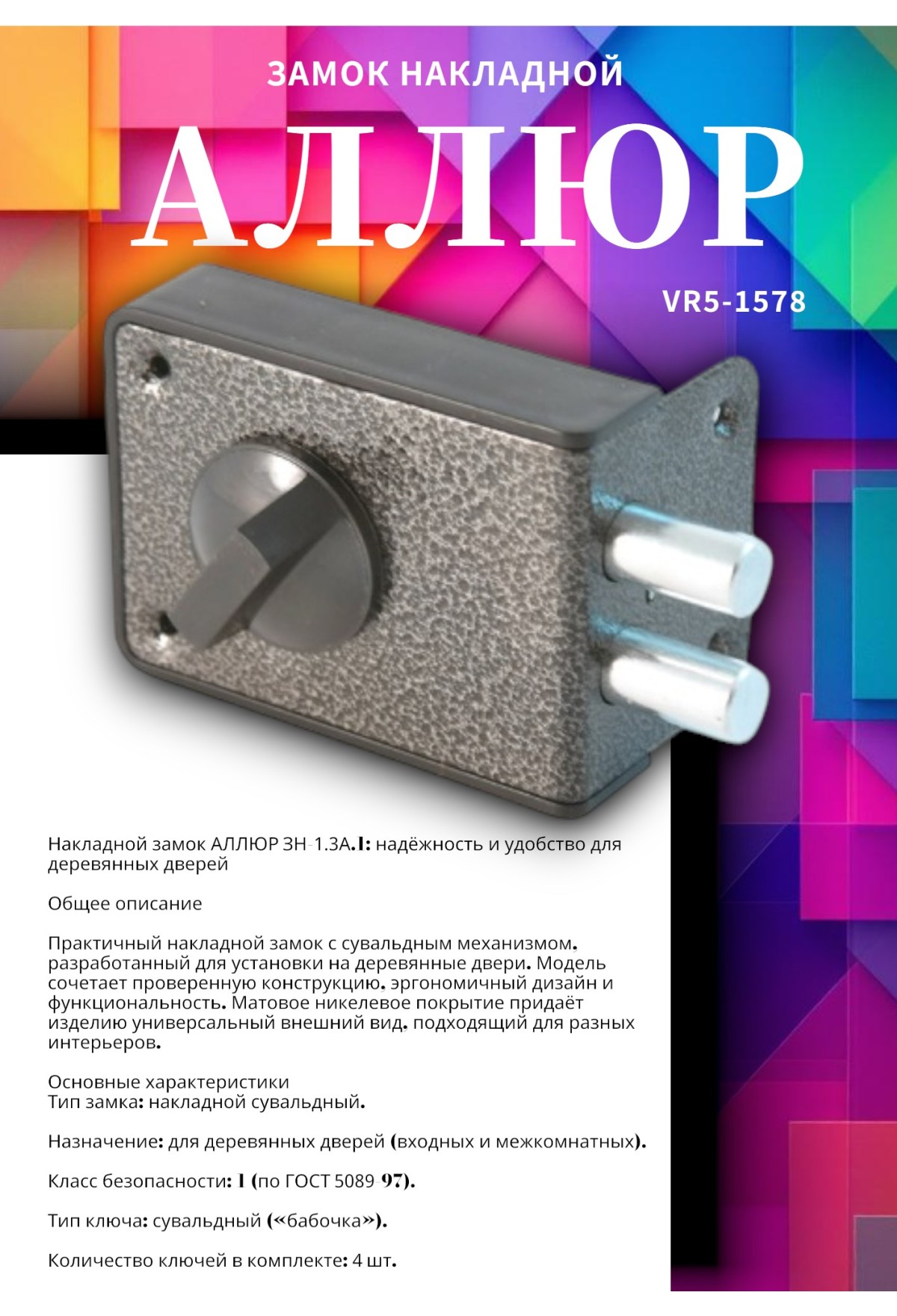 Накладной замок АЛЛЮР ЗН‑1.3А.1: надёжность и удобство для деревянных дверей