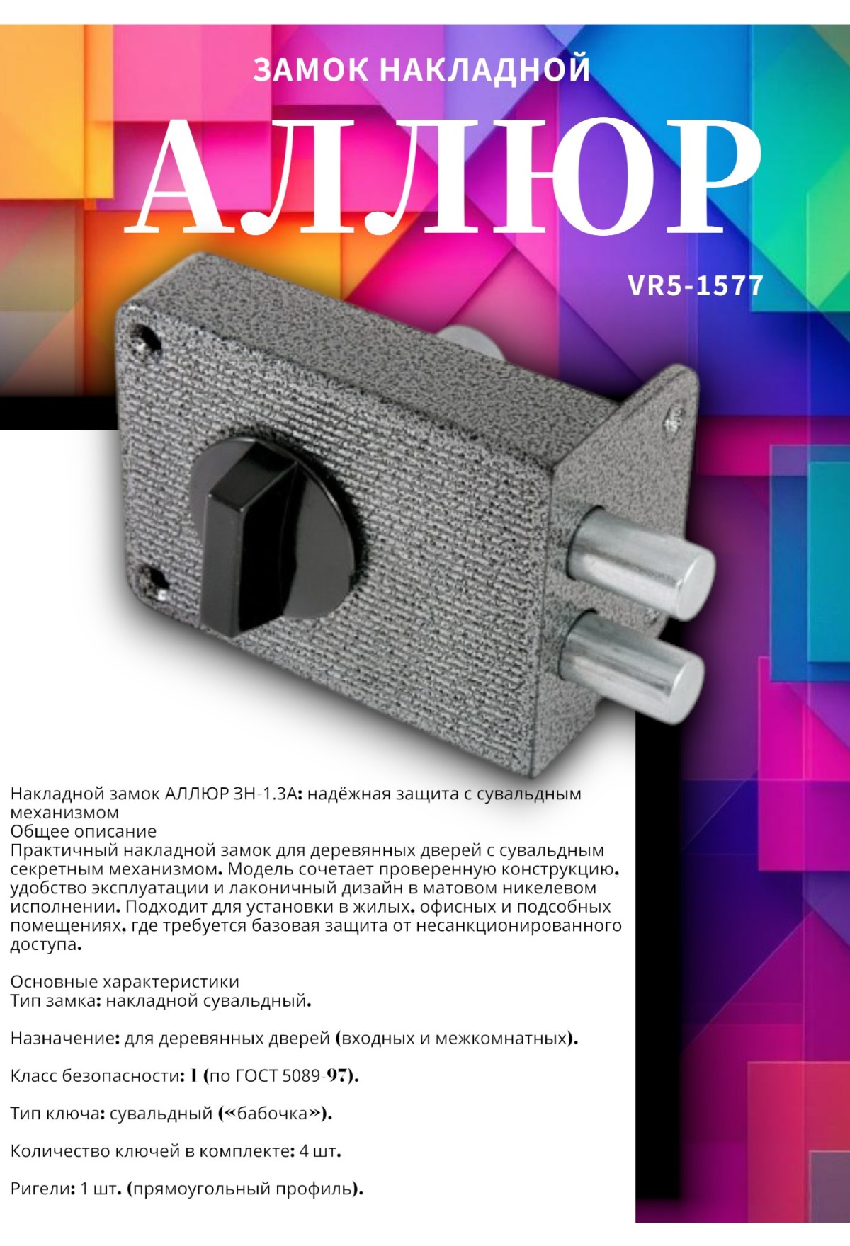 Накладной замок АЛЛЮР ЗН‑1.3А: надёжная защита с сувальдным механизмом