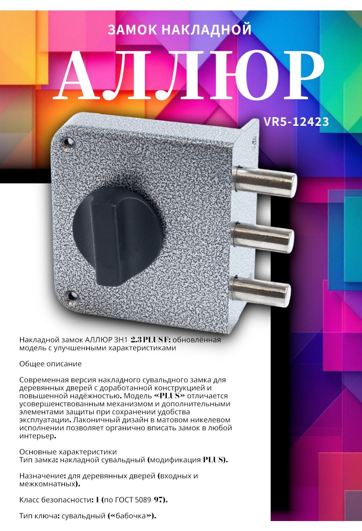 Накладной замок АЛЛЮР ЗН1‑2.3 PLUS F: обновлённая модель с улучшенными характеристиками