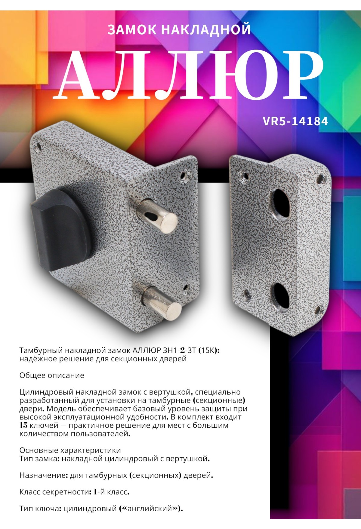 Тамбурный накладной замок АЛЛЮР ЗН1‑2‑3Т (15К): надёжное решение для секционных дверей