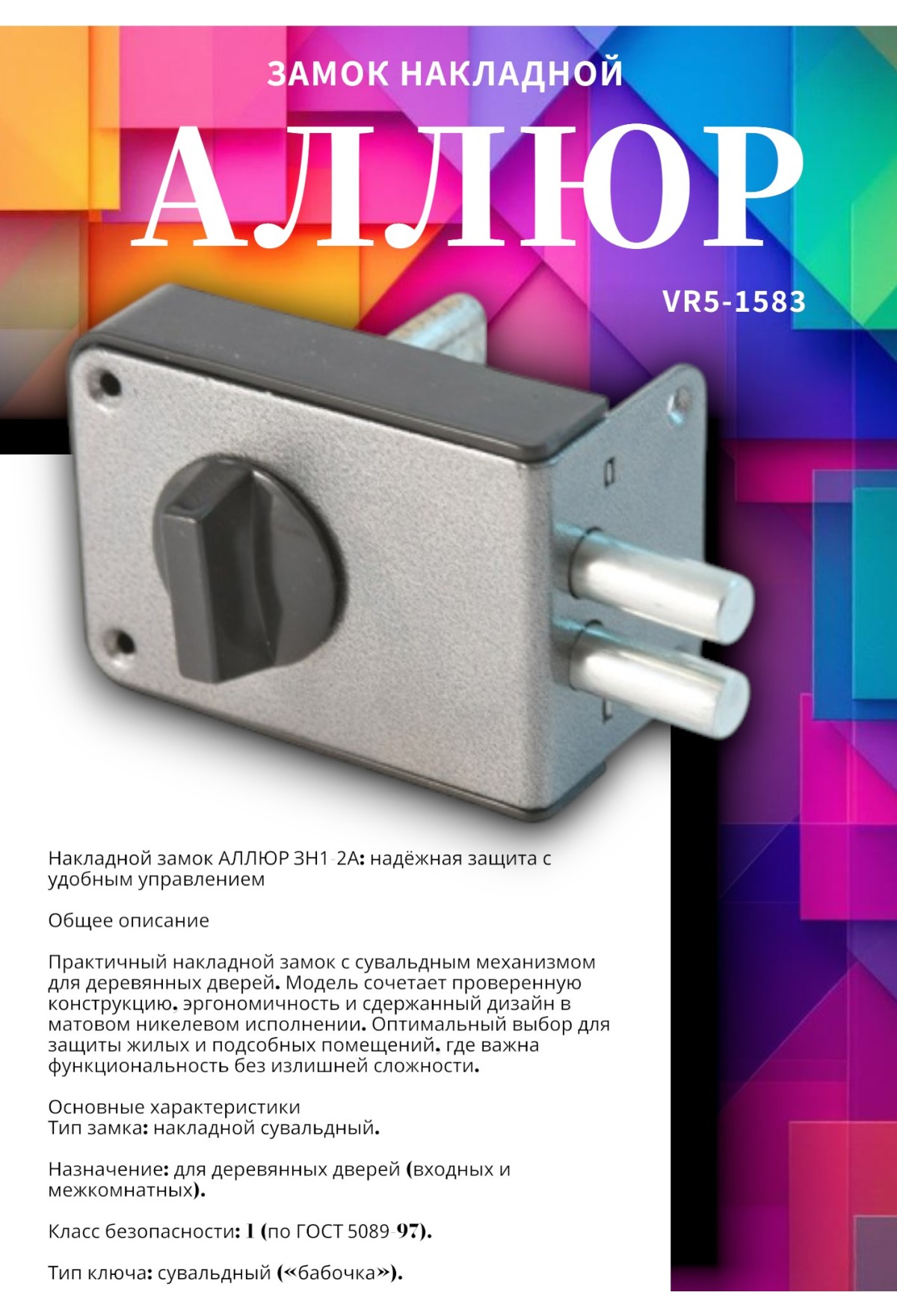 Накладной замок АЛЛЮР ЗН1‑2А: надёжная защита с удобным управлением