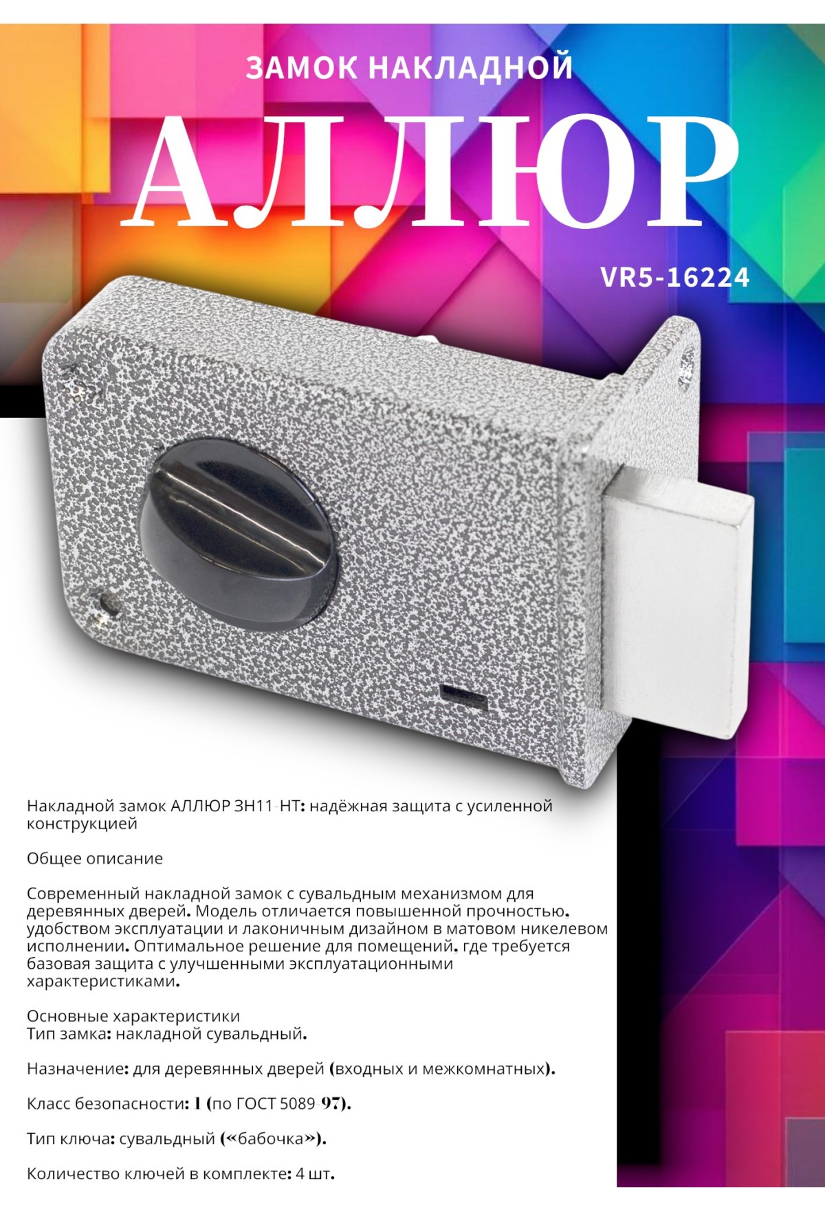 Накладной замок АЛЛЮР ЗН11‑НТ: надёжная защита с усиленной конструкцией