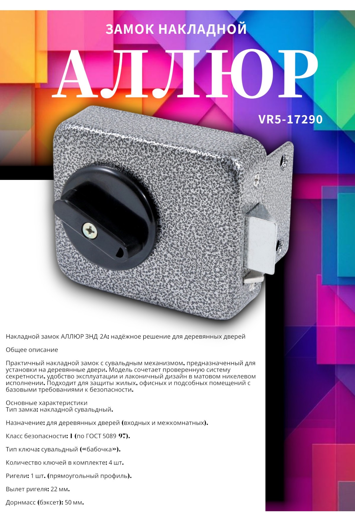 Накладной замок АЛЛЮР ЗНД‑2А: надёжное решение для деревянных дверей