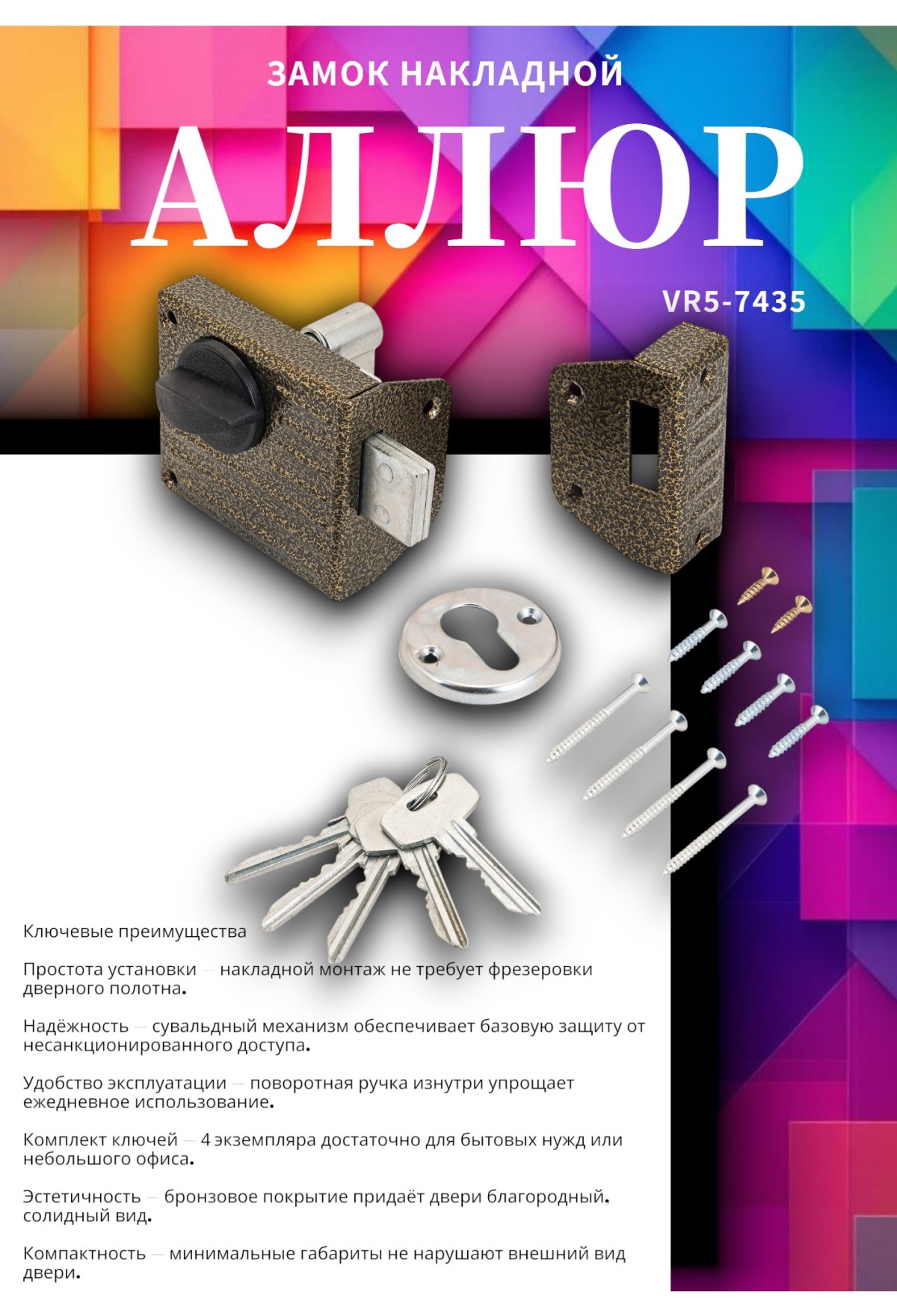 Тэги: СТАНДАРТ Россия ЗН1-2.1С бронза Замок накладной (16), VR5-7435, Стандарт, ✹ Дверные замки, механизмы, ✹ Замки накладные для деревянных дверей, ✹ Дверная фурнитура