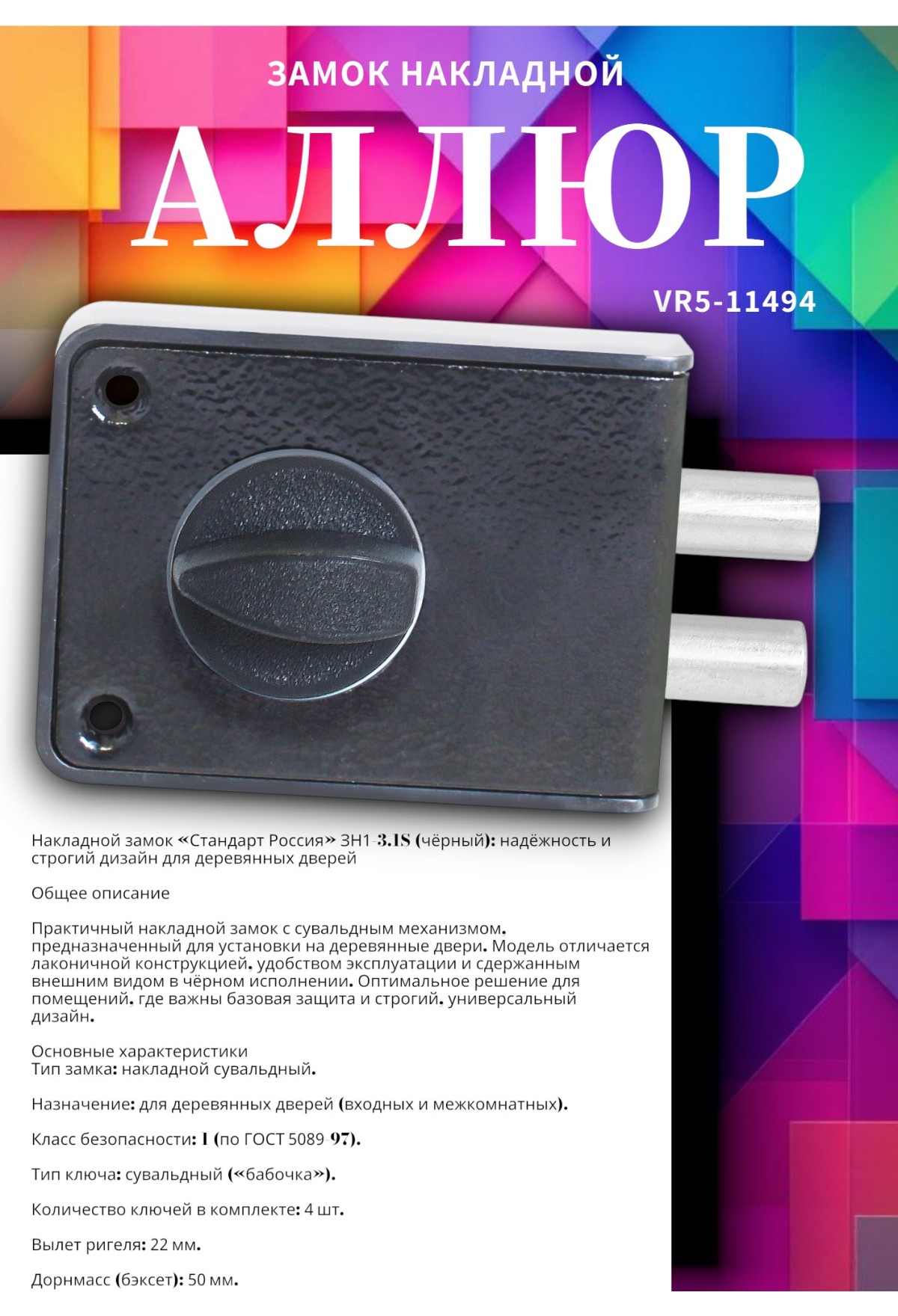 Накладной замок «Стандарт Россия» ЗН1‑3.1S (чёрный): надёжность и строгий дизайн для деревянных дверей