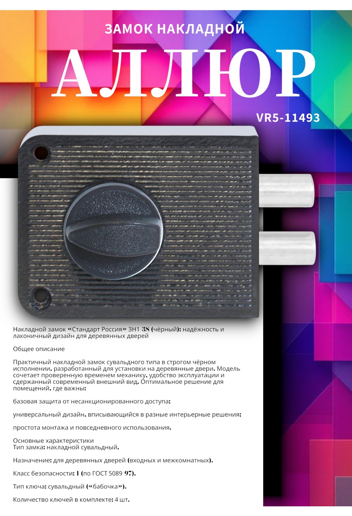 Технические характеристики Замок накладной СТАНДАРТ Россия ЗН1-3С черный