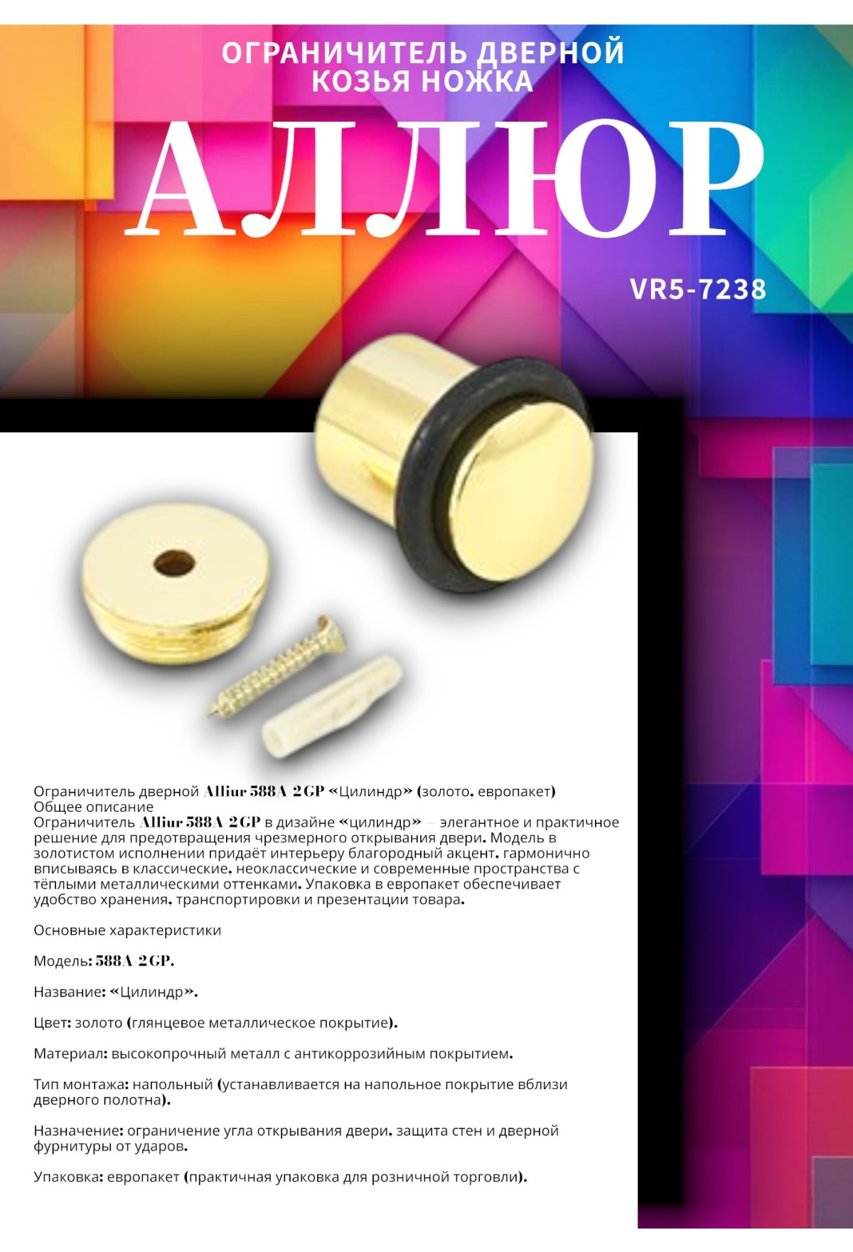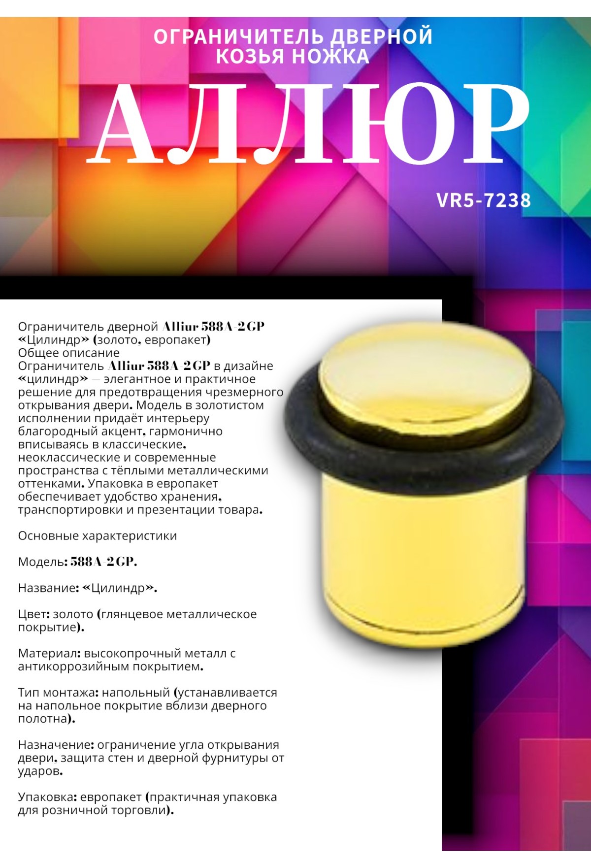 Ограничитель дверной Alliur 588A‑2 GP «Цилиндр» (золото, европакет)