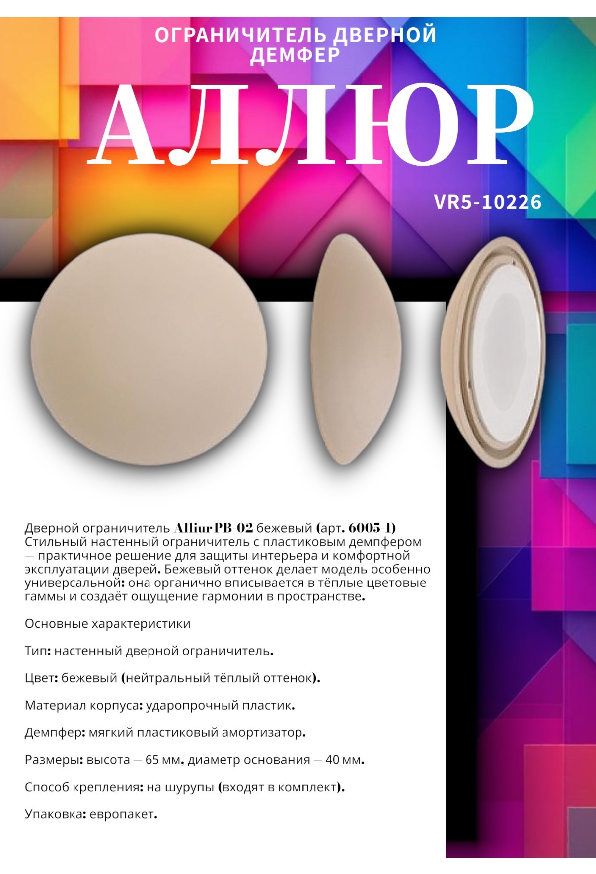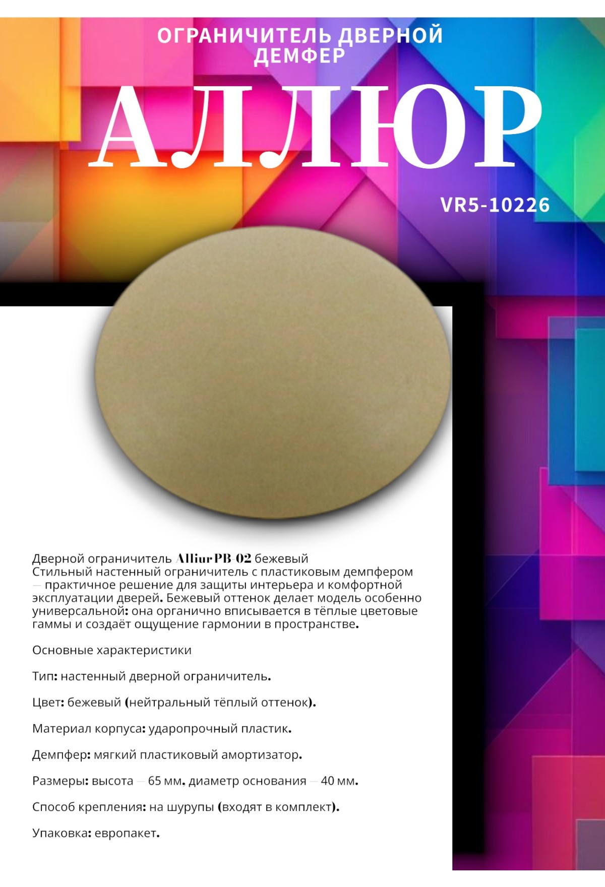 Выберите дверной ограничитель Alliur PB‑02 бежевый — надёжную защиту интерьера с безупречным внешним видом!