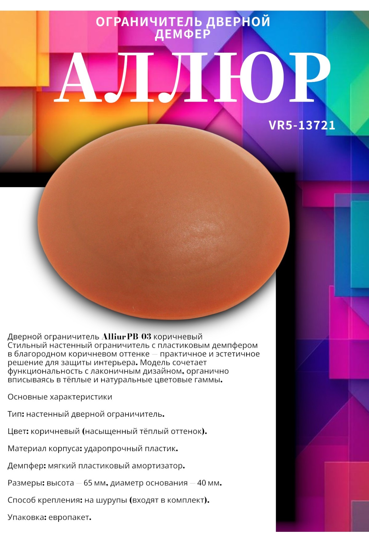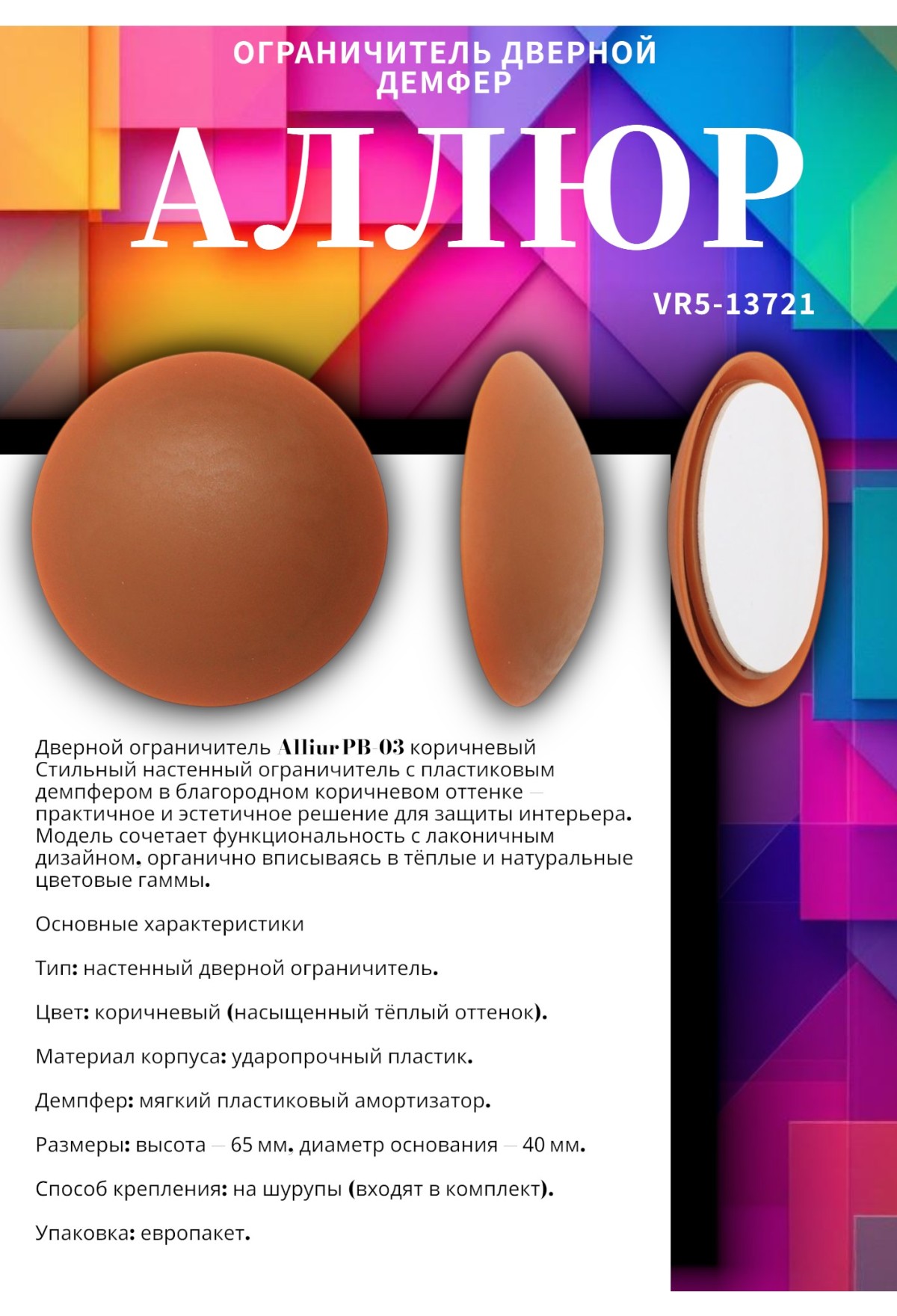 Сделайте свой интерьер комфортнее и защитите его от повреждений с дверным ограничителем Alliur PB‑03 в благородном коричневом исполнении!