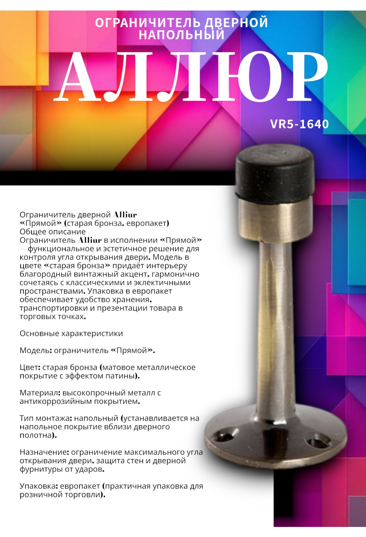 Ограничитель дверной Alliur «Прямой» (старая бронза, европакет)