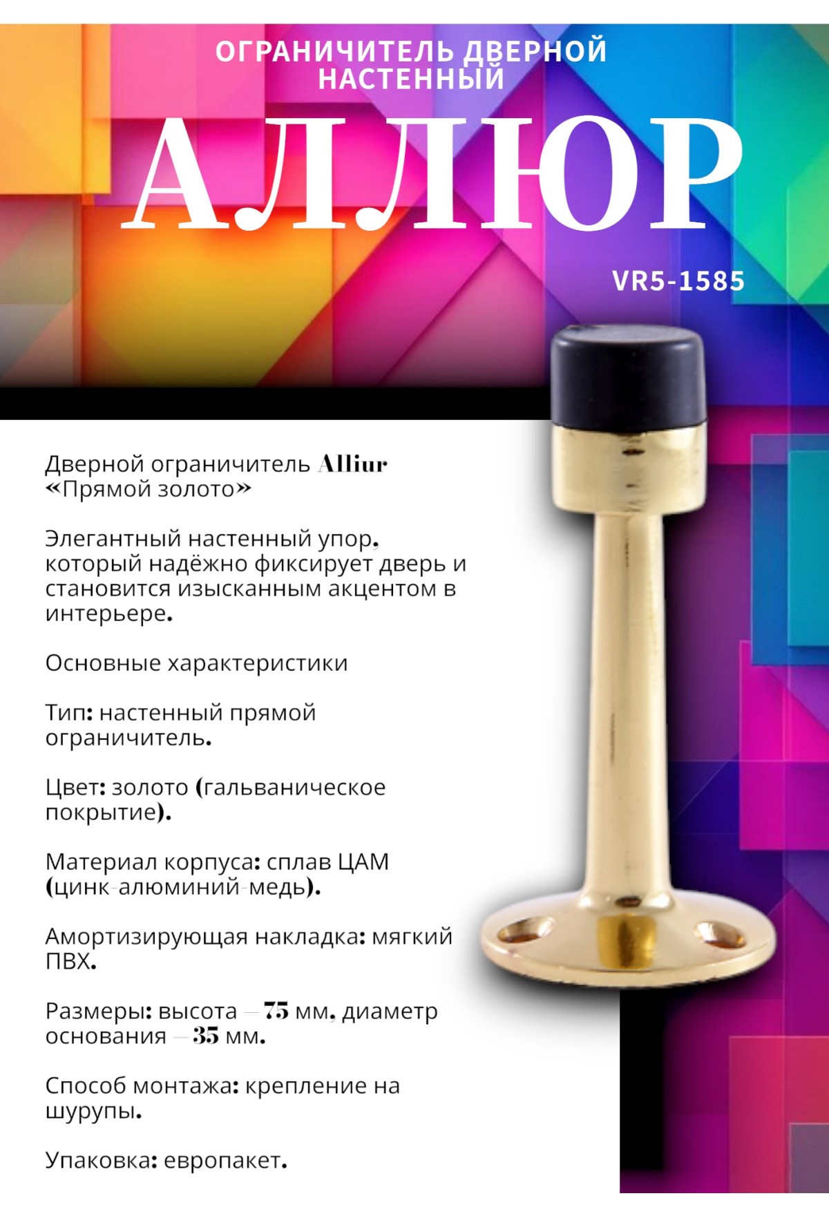 Дверной ограничитель Alliur «Прямой золото» (европакет, артикул 40050‑1)