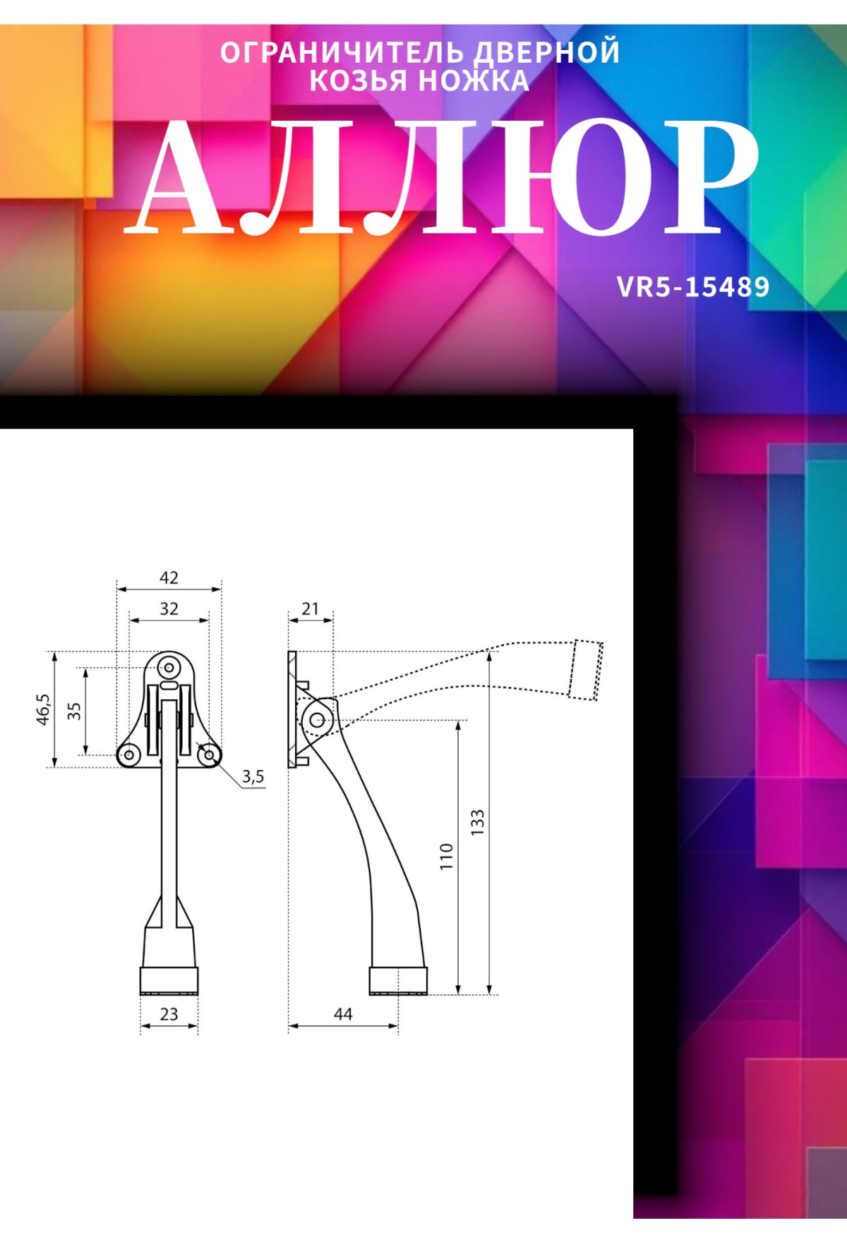 Фиксатор дверной Alliur KN‑130 SN «Козья ножка» (матовый никель, блистер)