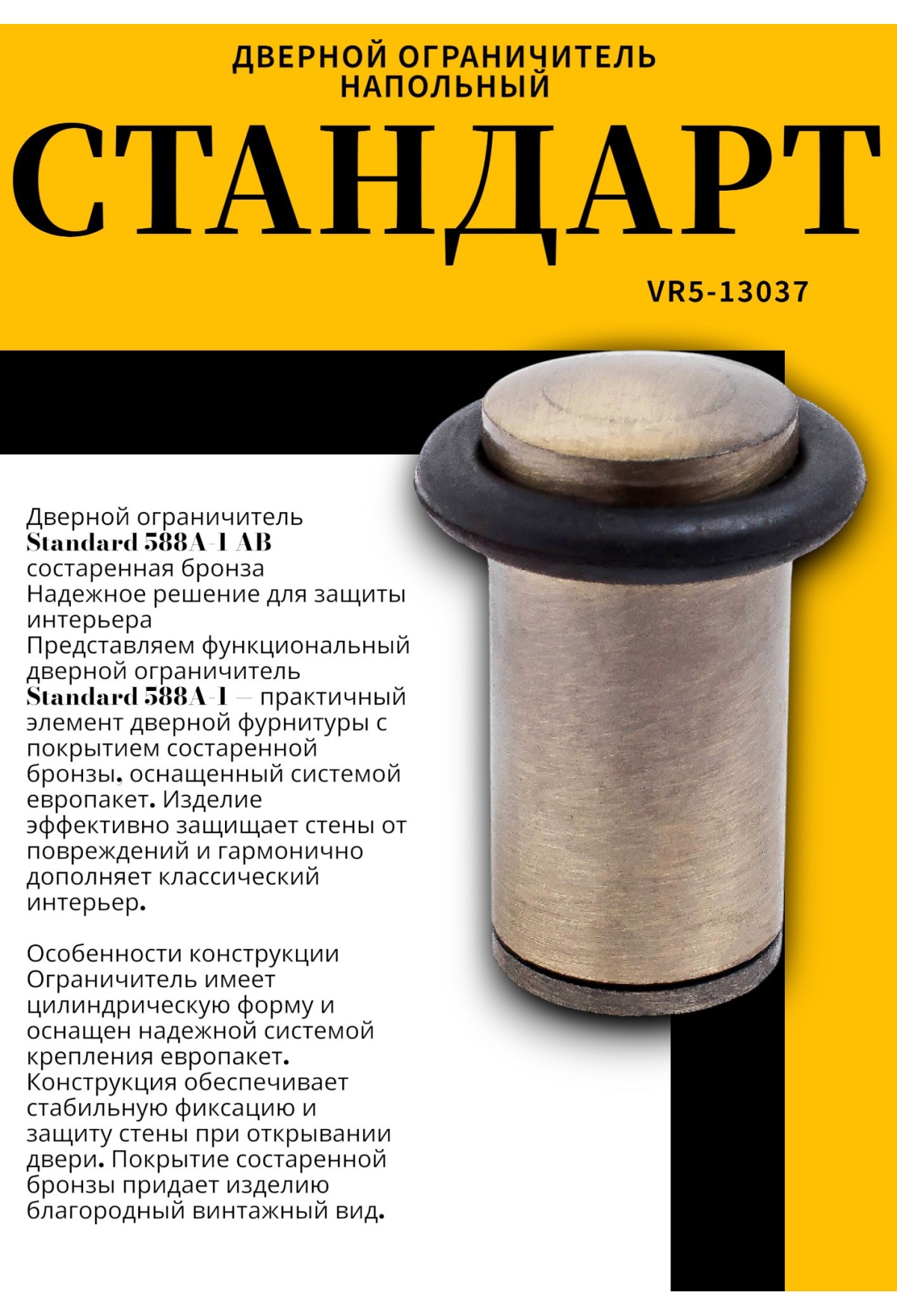 Дверной ограничитель Standard 588A-1 AB состаренная бронза