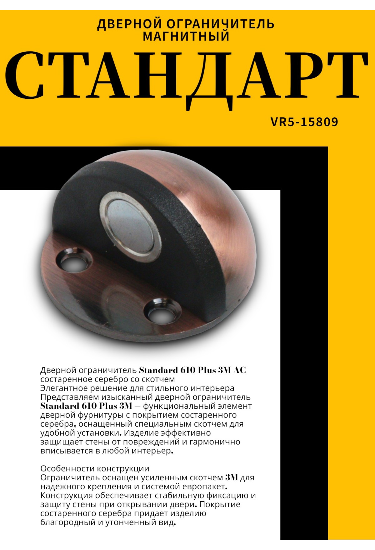 Дверной ограничитель Standard 610 Plus 3M AC состаренное серебро со скотчем