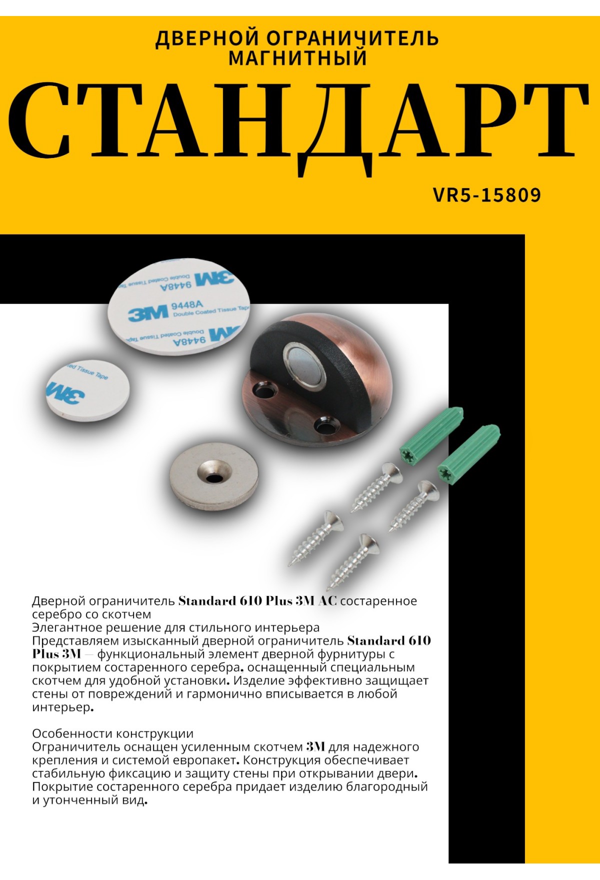 Представляем изысканный дверной ограничитель Standard 610 Plus 3M — роскошный элемент дверной фурнитуры с золотым покрытием, оснащенный специальным скотчем для удобной установки. Изделие не только эффективно защищает стены от повреждений, но и становится стильным акцентом в интерьере.