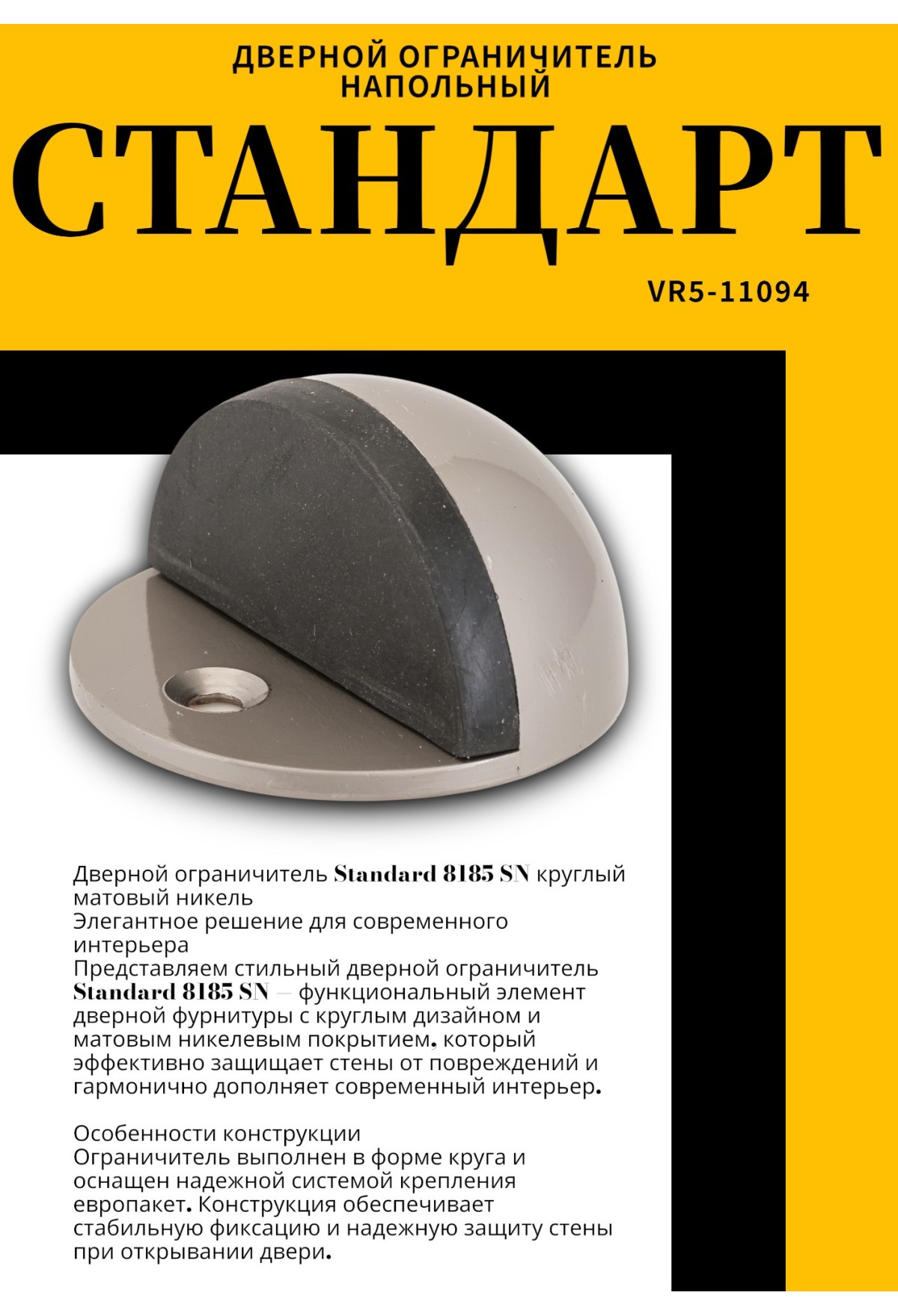 СТАНДАРТ 8185 SN круглый мат.никель ограничитель дверной ЕВРОПАКЕТ (360,60)