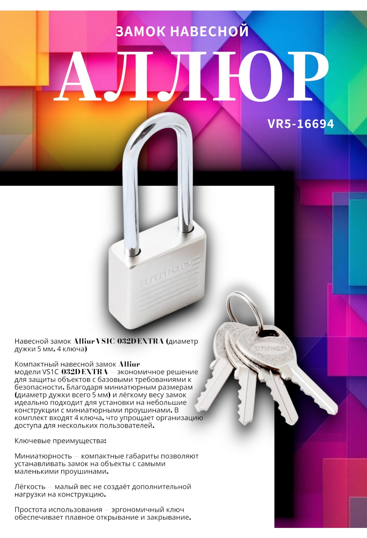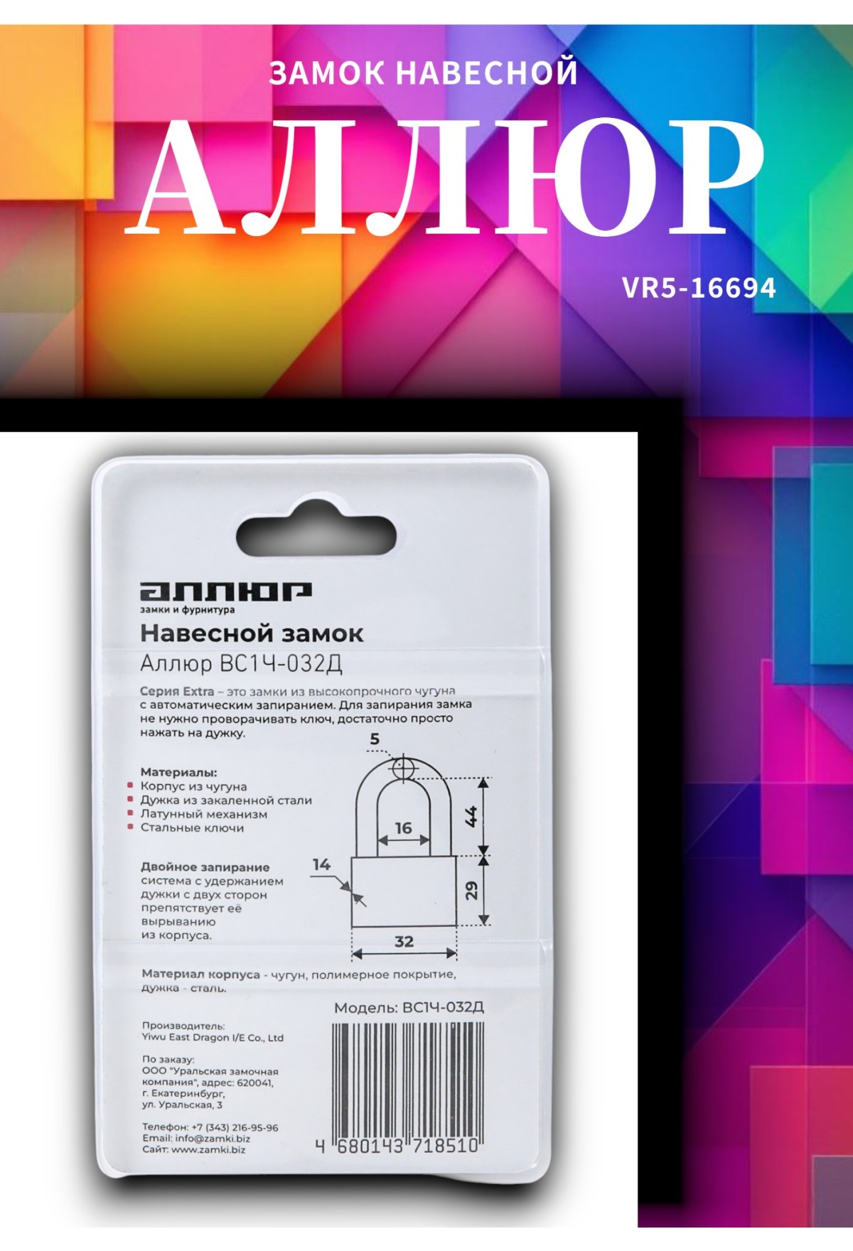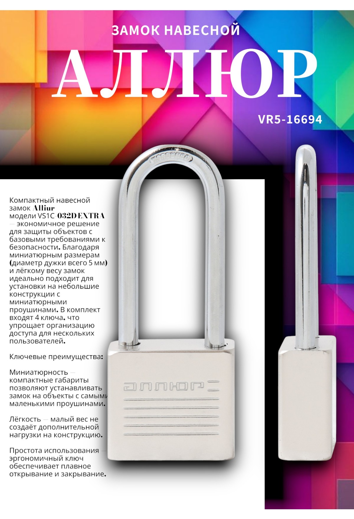 АЛЛЮР BC-501L(ВС1Л-501Д) d9мм дл.дужка Замок навесной (48,6) На складе Код товара: VR5-1280 АЛЛЮР BC-501L(ВС1Л-501Д) d9мм дл.дужка Замок навесной (48,6)