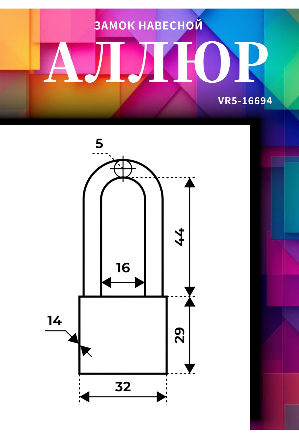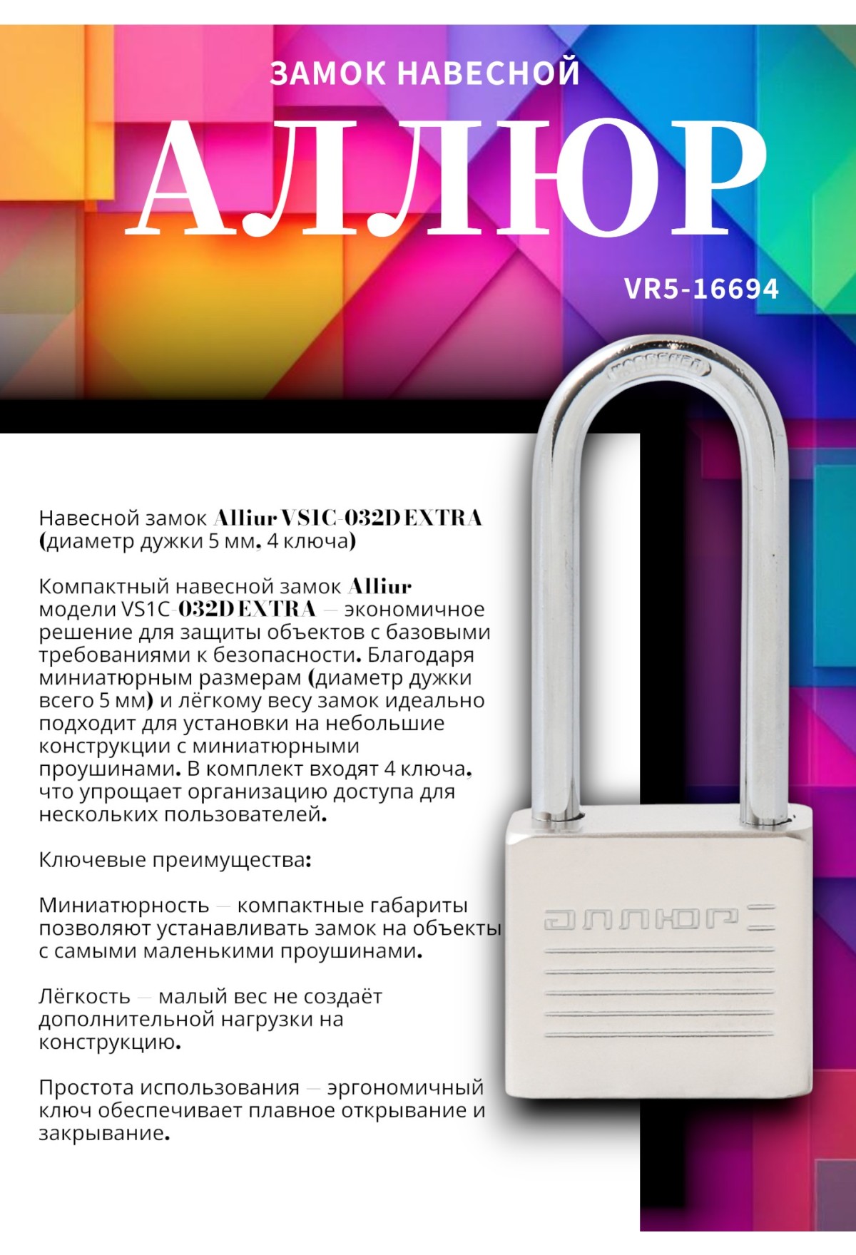 Технические характеристики АЛЛЮР ВС1Ч-032Д EXTRA дл.дужка d5мм 4кл. Замок навесной (144,12)