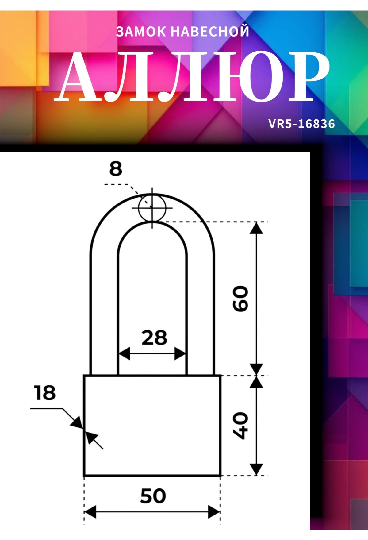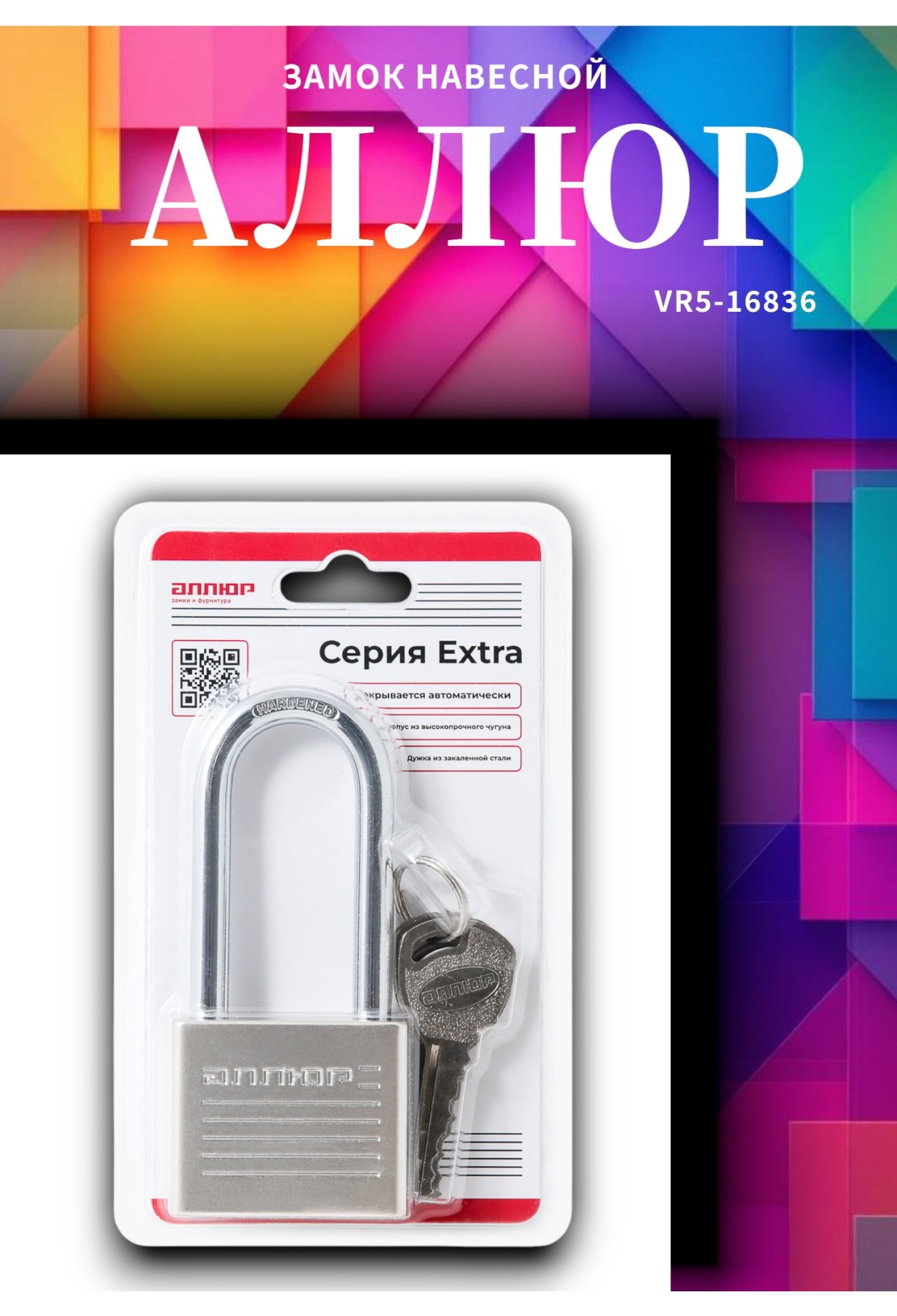 Навесной замок Alliur VS1C‑050D EXTRA (диаметр дужки 8 мм, 4 ключа)