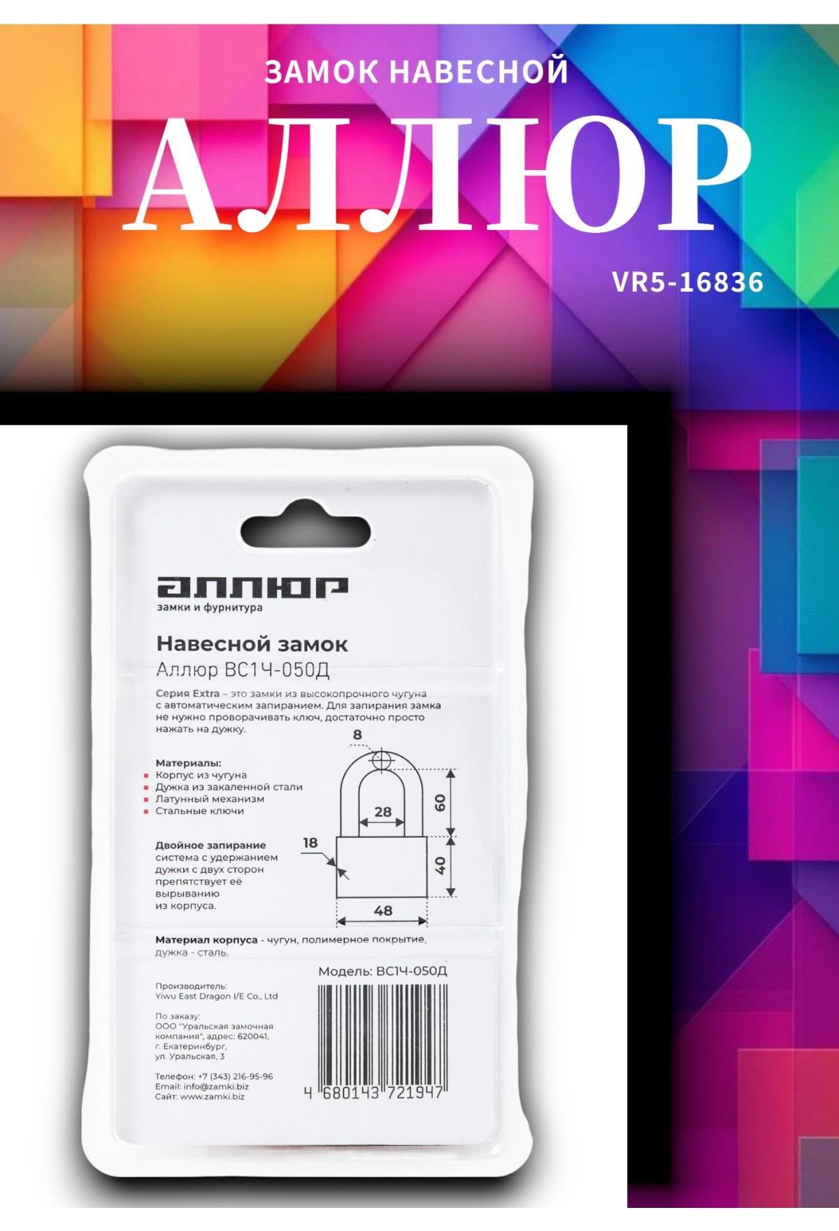 Прочность и надёжность — увеличенный диаметр дужки и качественная сборка обеспечивают повышенную устойчивость к взлому.
