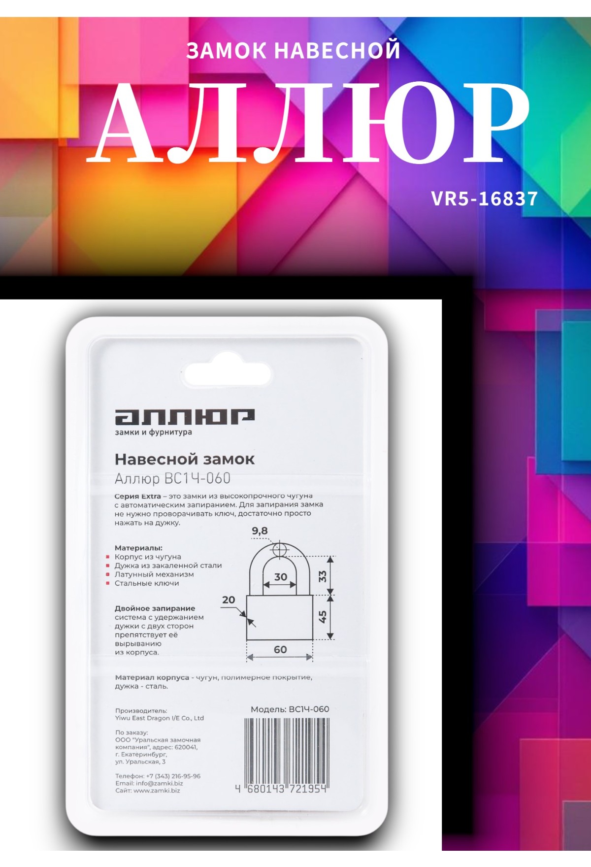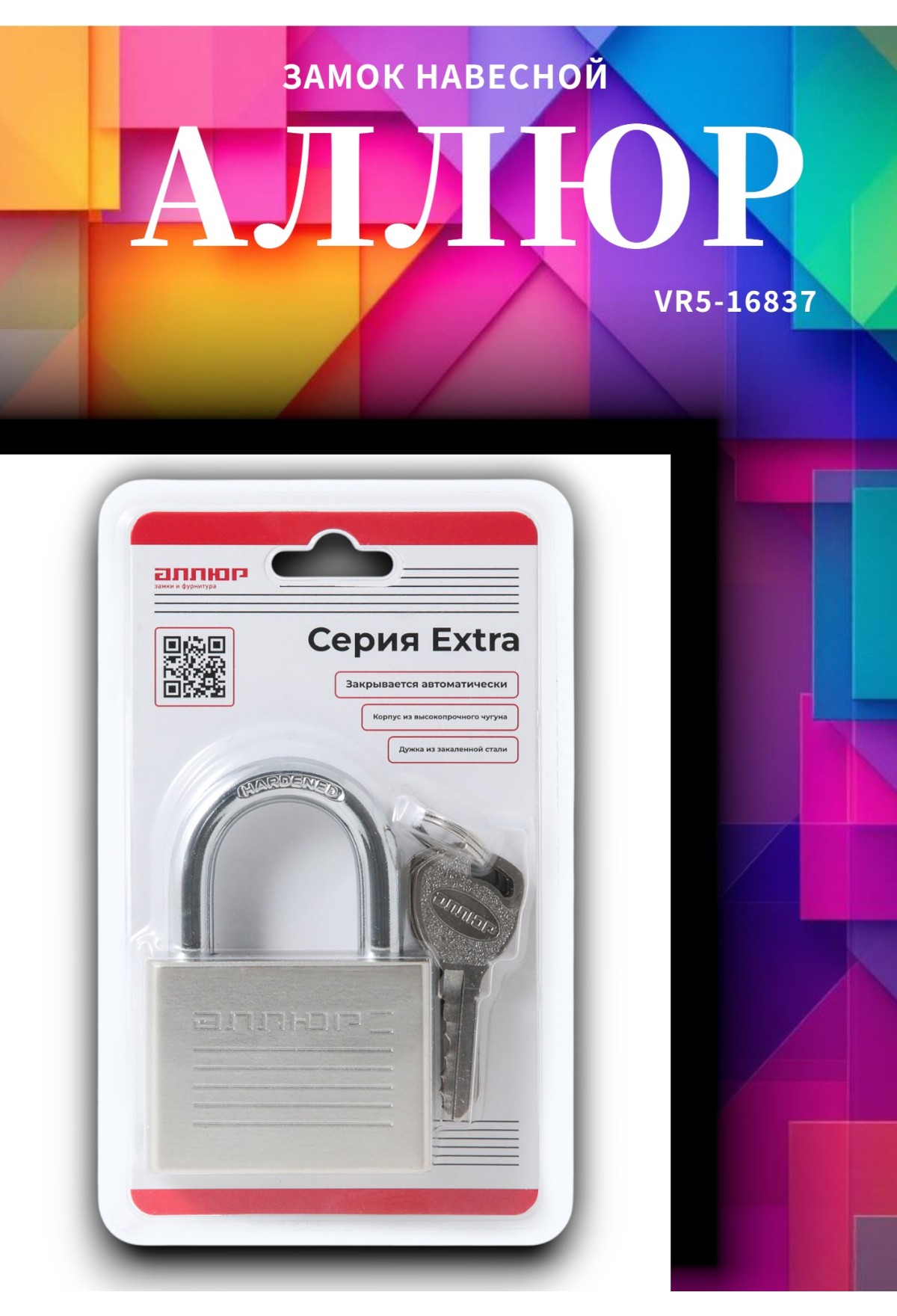АЛЛЮР BC-501L(ВС1Л-501Д) d9мм дл.дужка Замок навесной (48,6) На складе Код товара: VR5-1280 АЛЛЮР BC-501L(ВС1Л-501Д) d9мм дл.дужка Замок навесной (48,6)