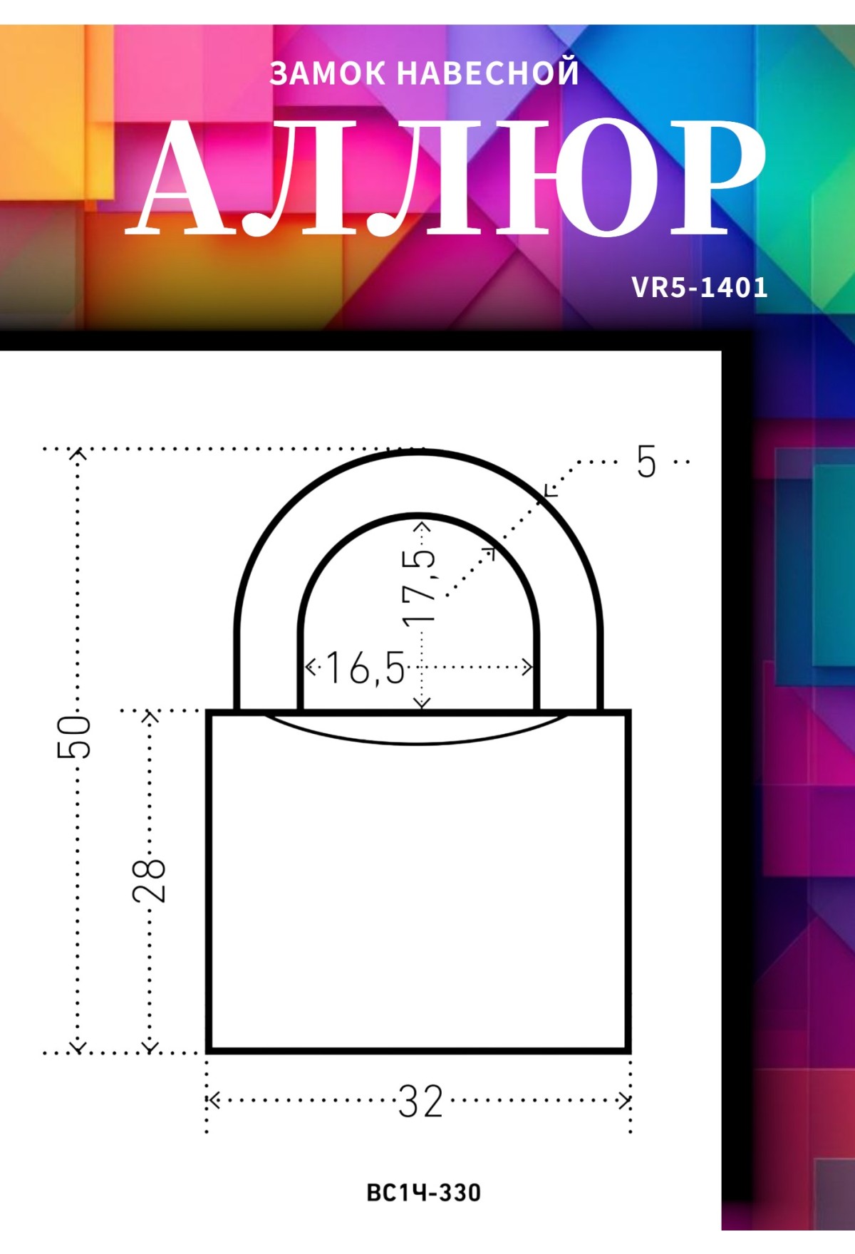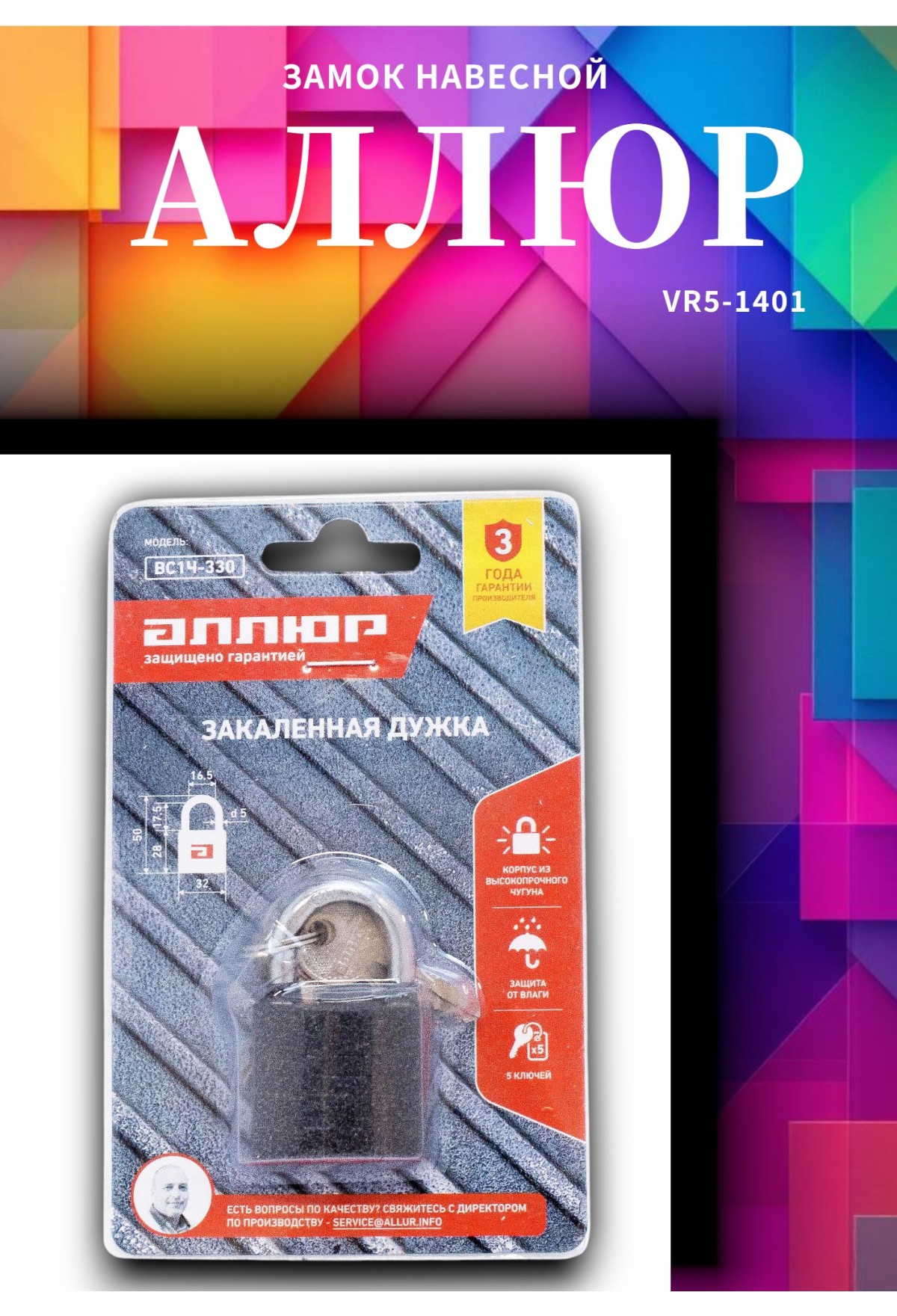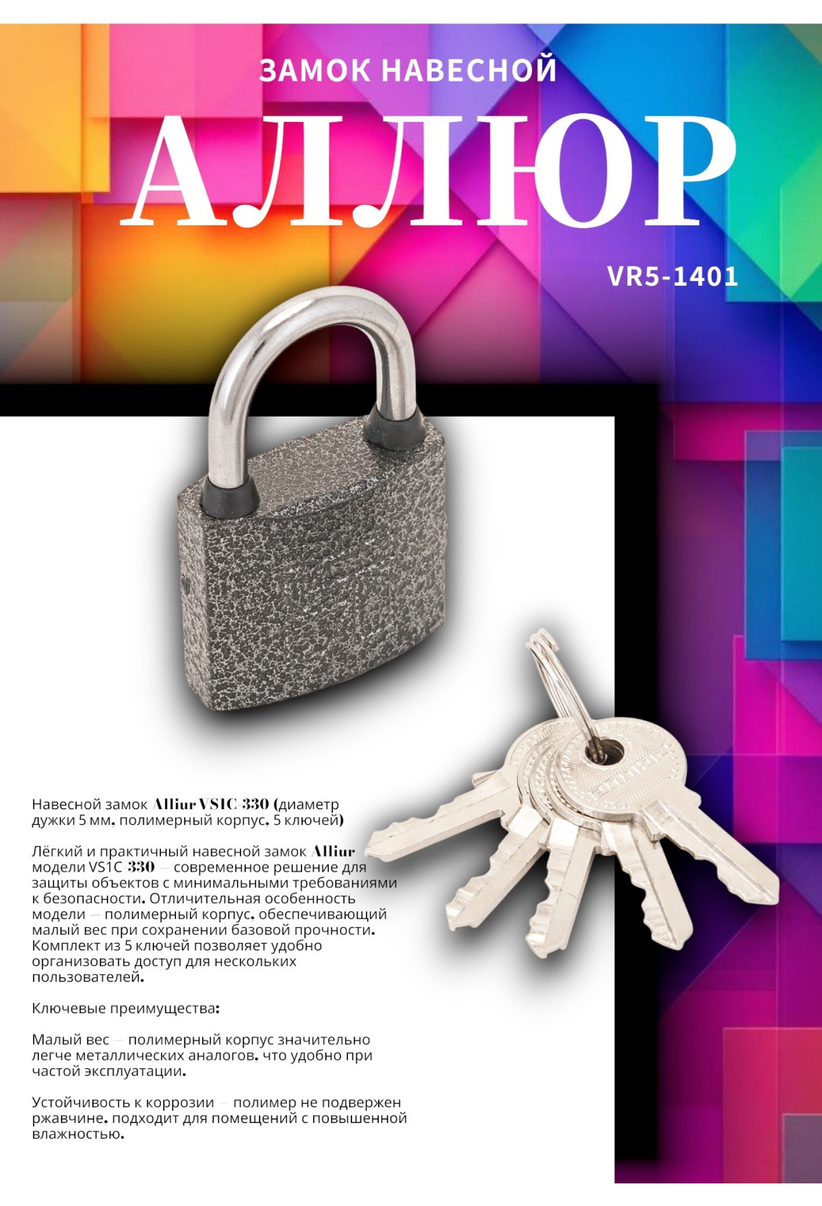 Навесной замок Alliur VS1C‑330 (диаметр дужки 5 мм, полимерный корпус, 5 ключей)