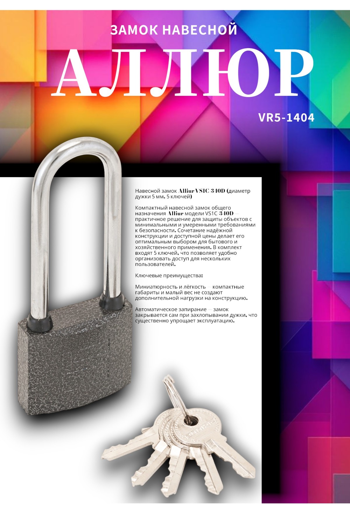 Тэги: АЛЛЮР ВС1Ч-340Д дл.дужка d5мм 5кл. Замок навесной (96, 12!!!), VR5-1404, Аллюр, ✹ Замки навесные, ✹ Замки общего назначения, ✹ Дверная фурнитура