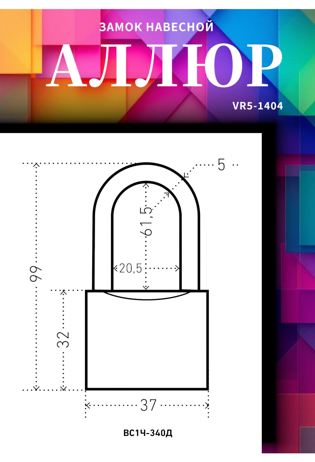 Технические характеристики АЛЛЮР ВС1Ч-340Д дл.дужка d5мм 5кл. Замок навесной (96,12!!!)
