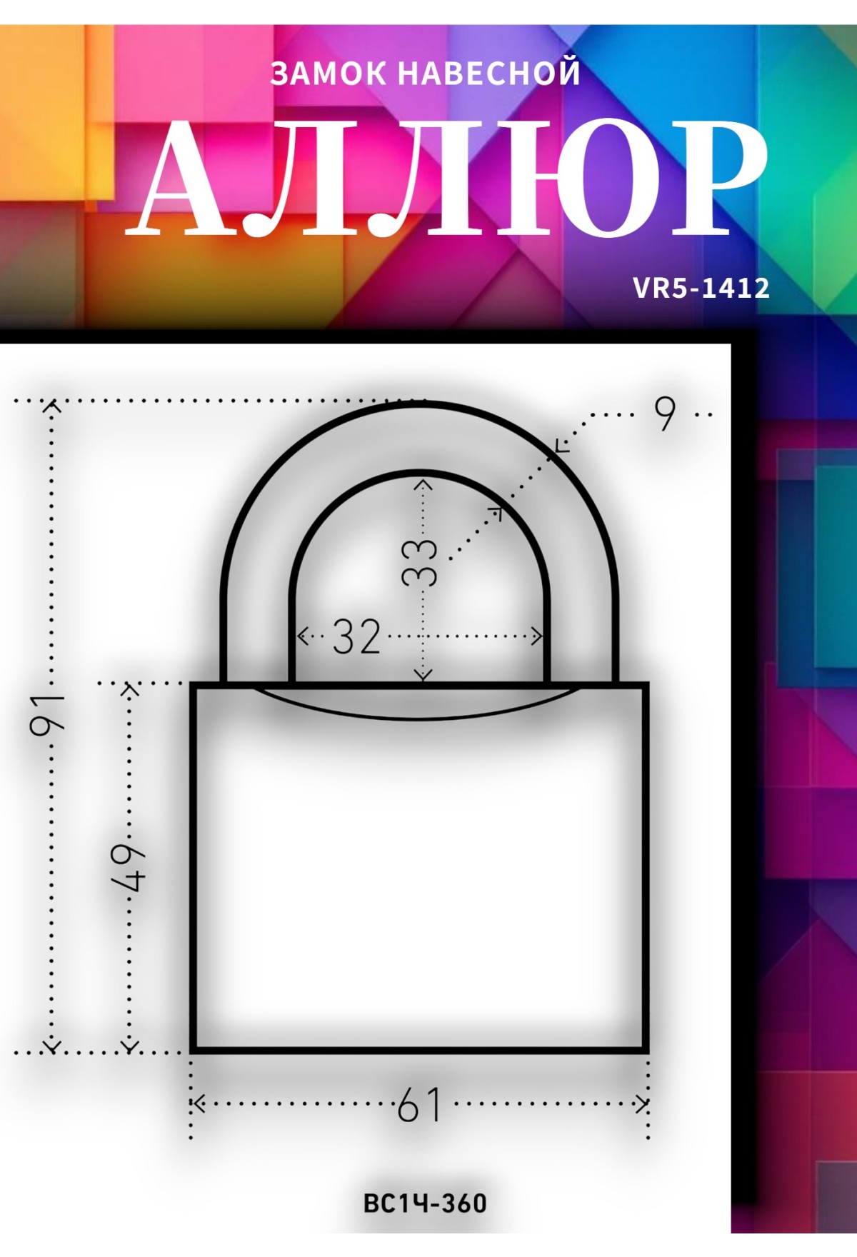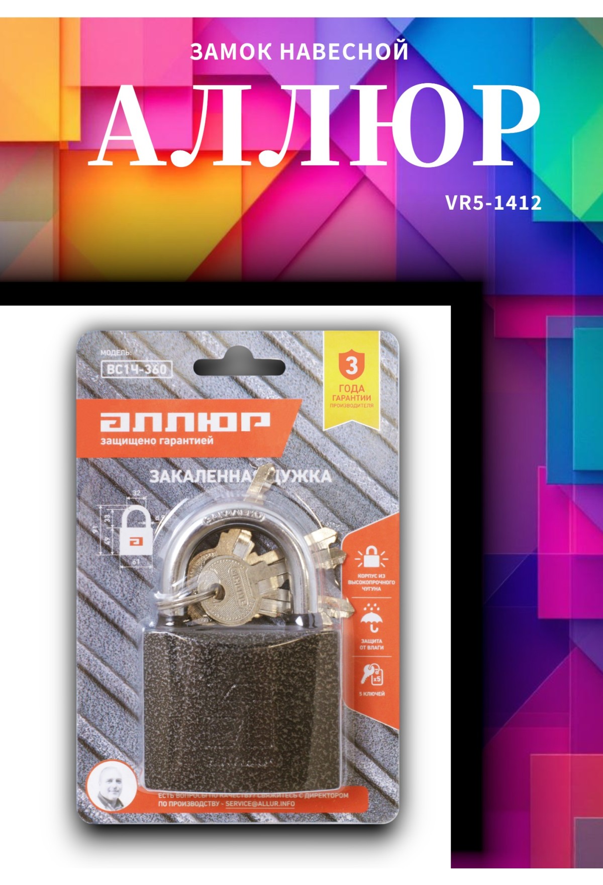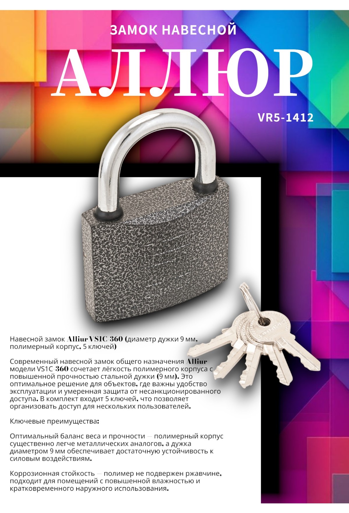 Навесной замок Alliur VS1C‑360 (диаметр дужки 9 мм, полимерный корпус, 5 ключей)