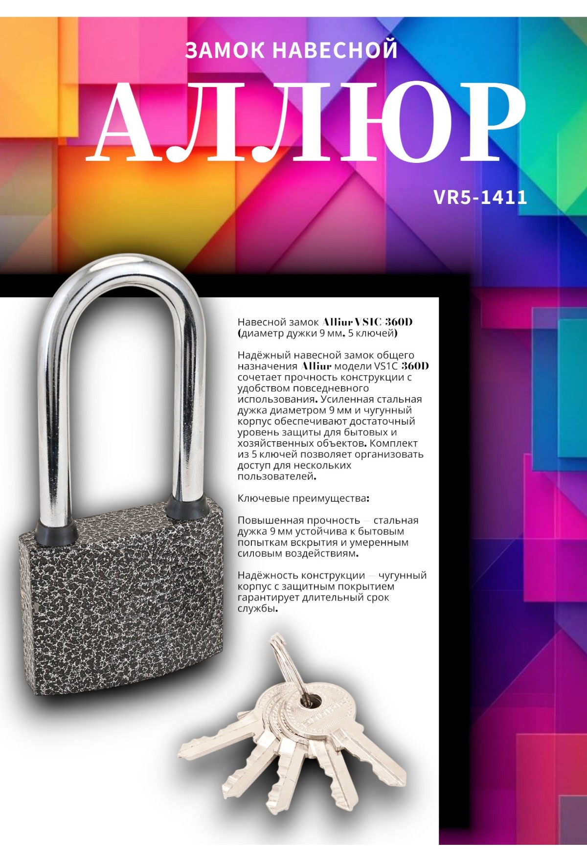 Тэги: АЛЛЮР ВС1Ч-360Д дл.дужка d9мм 5кл. Замок навесной (36, 6!!!), VR5-1411, Аллюр, ✹ Замки навесные, ✹ Замки общего назначения, ✹ Дверная фурнитура