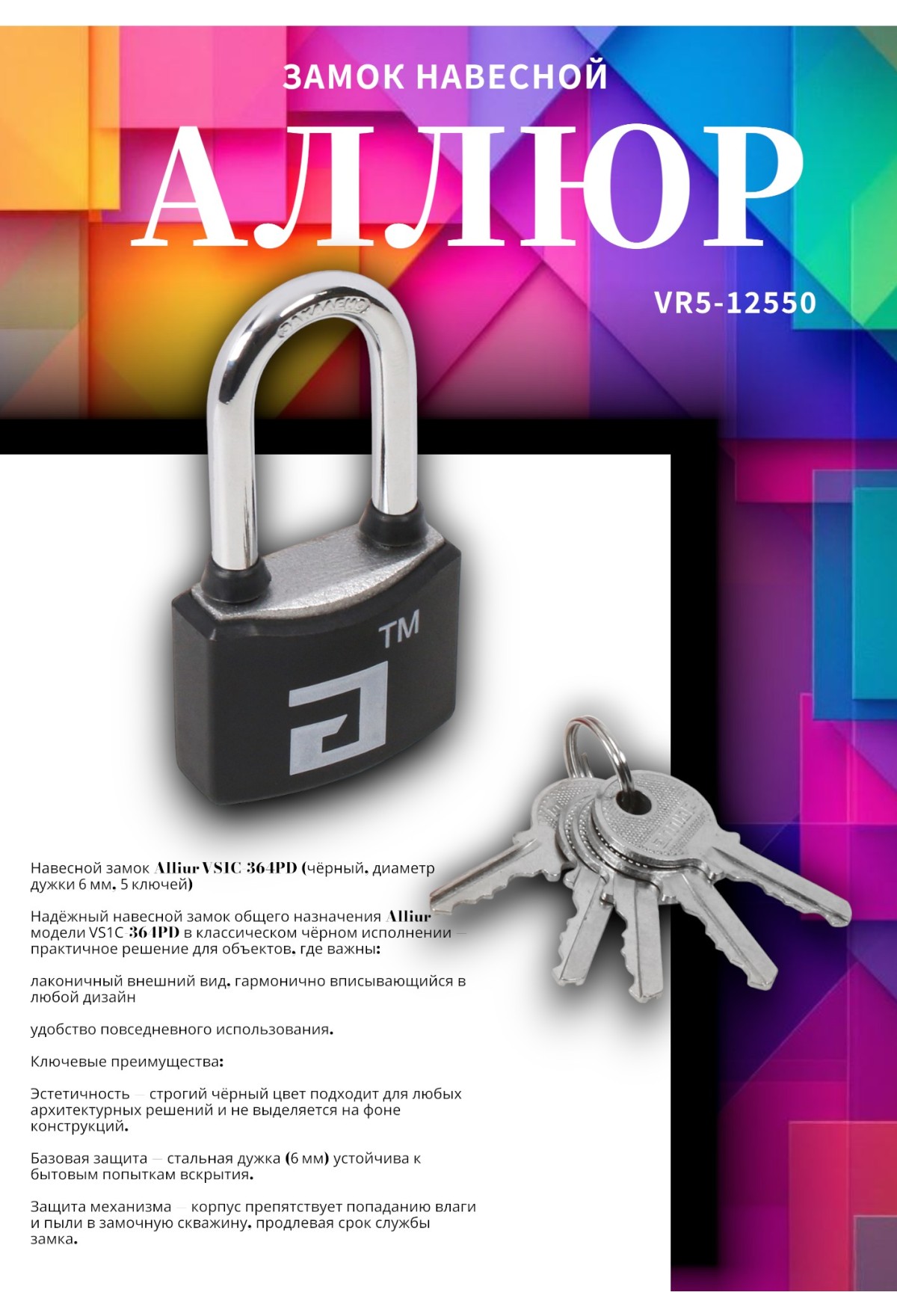 АЛЛЮР BC-501L(ВС1Л-501Д) d9мм дл.дужка Замок навесной (48,6) На складе Код товара: VR5-1280 АЛЛЮР BC-501L(ВС1Л-501Д) d9мм дл.дужка Замок навесной (48,6)