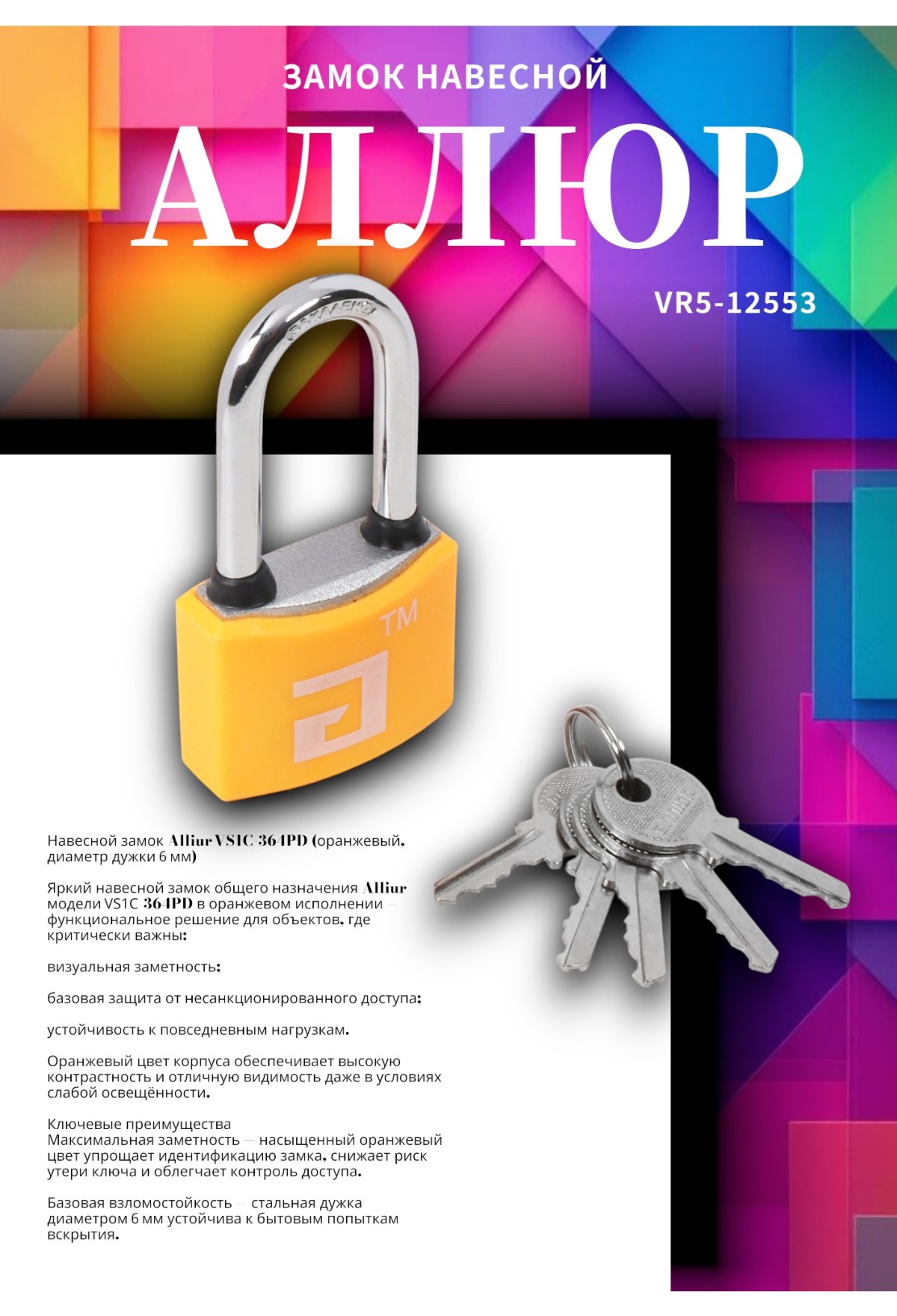 АЛЛЮР BC-501L(ВС1Л-501Д) d9мм дл.дужка Замок навесной (48,6) На складе Код товара: VR5-1280 АЛЛЮР BC-501L(ВС1Л-501Д) d9мм дл.дужка Замок навесной (48,6)