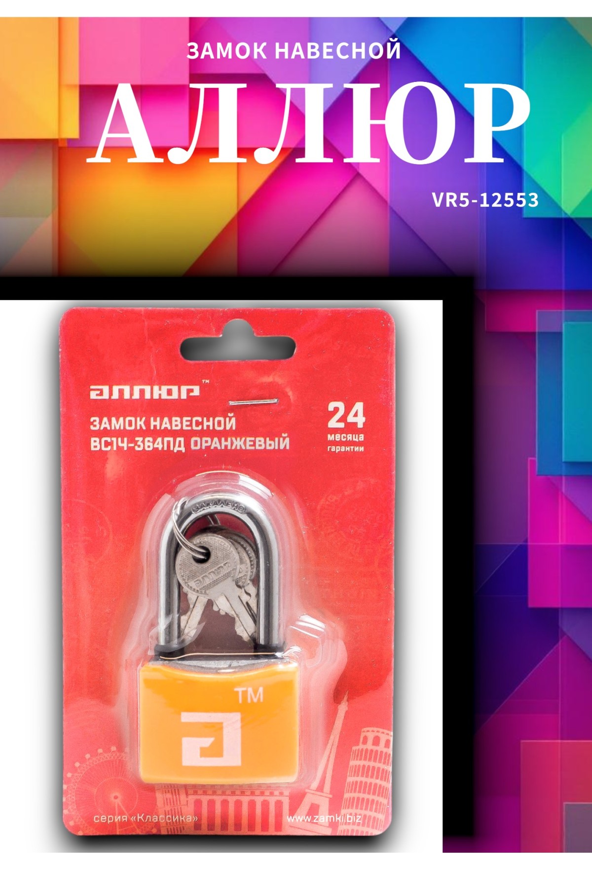 Технические характеристики АЛЛЮР ВС1Ч- 364ПД ОРАНЖЕВЫЙ 5 кл. d6мм дл.дужка Замок навесной (72,12)