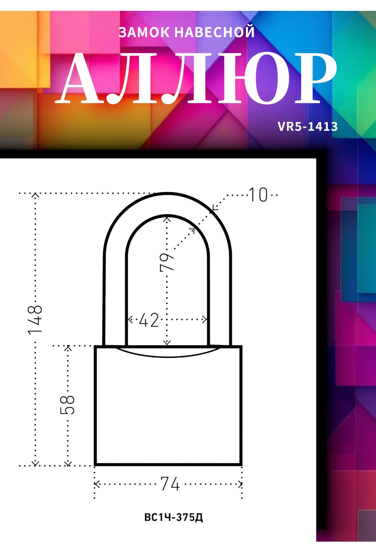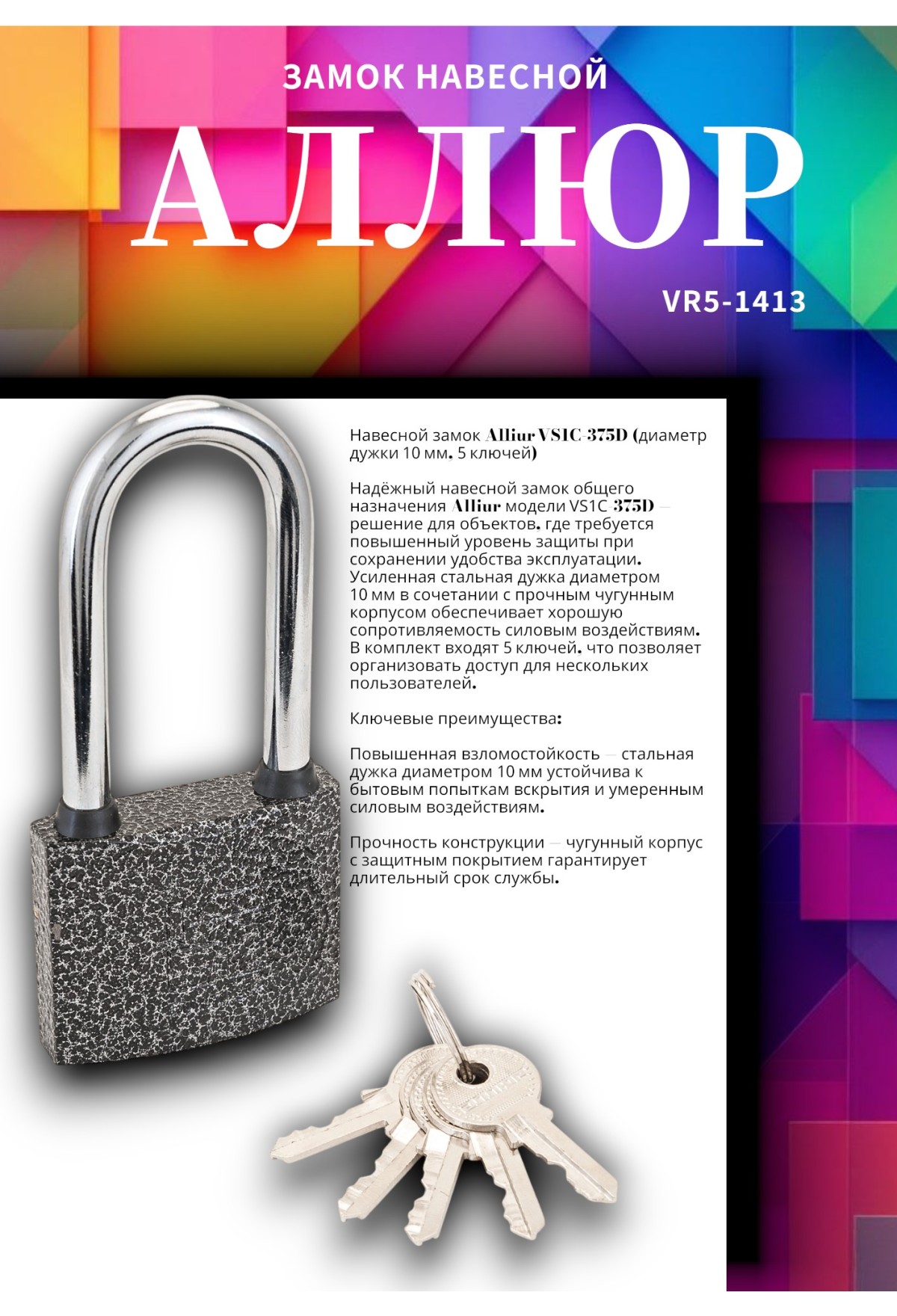 Навесной замок Alliur VS1C‑375D (диаметр дужки 10 мм, 5 ключей)