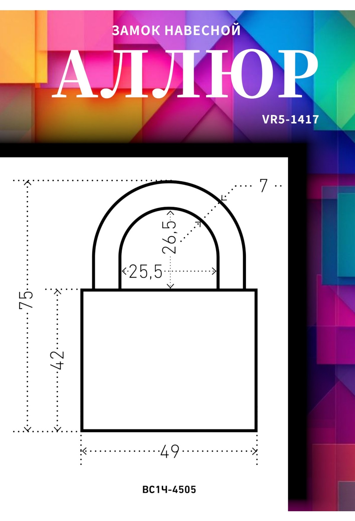 Навесной замок Alliur VS1C‑4505 (диаметр дужки 7 мм, 5 ключей)