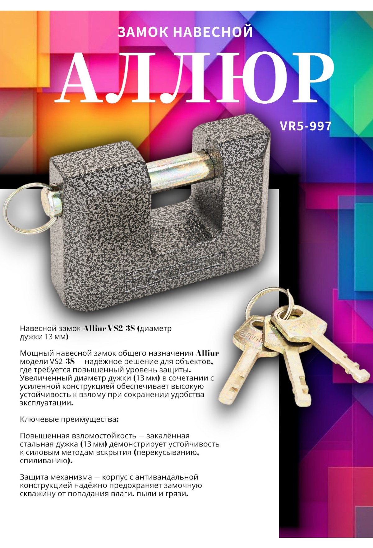 Навесной замок Alliur VS2‑3S (диаметр дужки 13 мм)