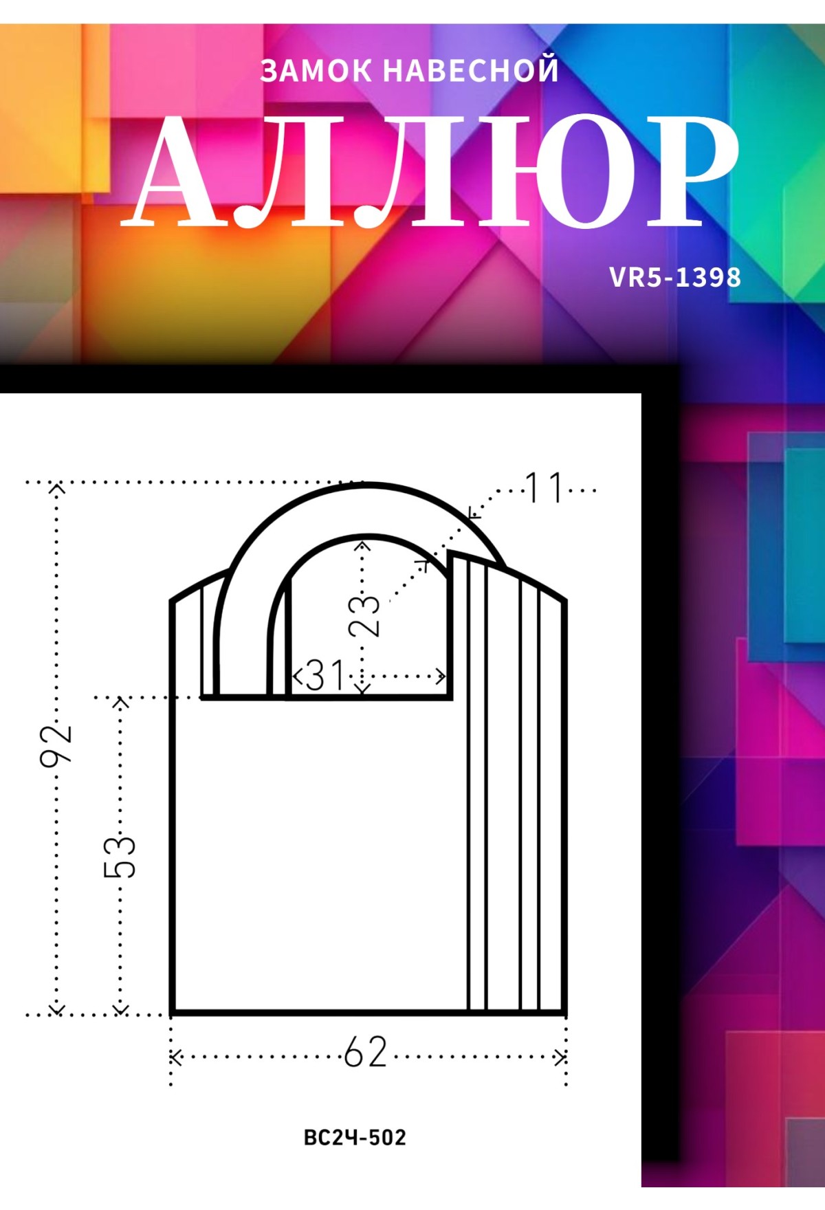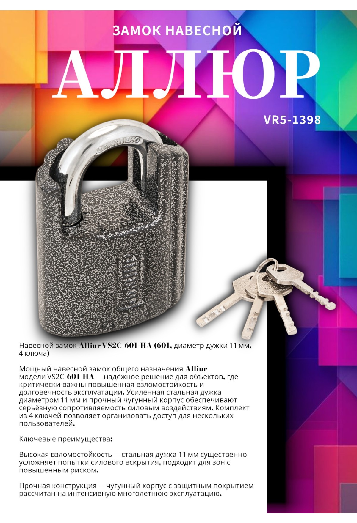 Навесной замок Alliur VS2C‑601‑HA (601, диаметр дужки 11 мм, 4 ключа)