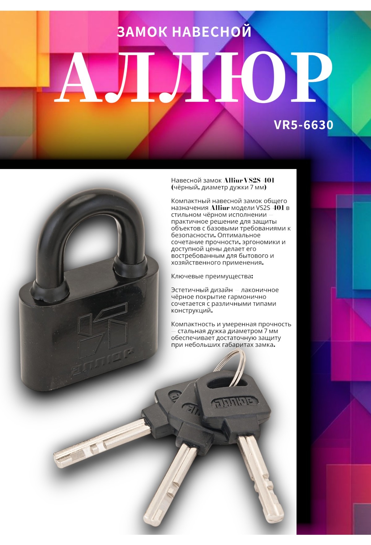 Навесной замок Alliur VS2S‑401 (чёрный, диаметр дужки 7 мм)