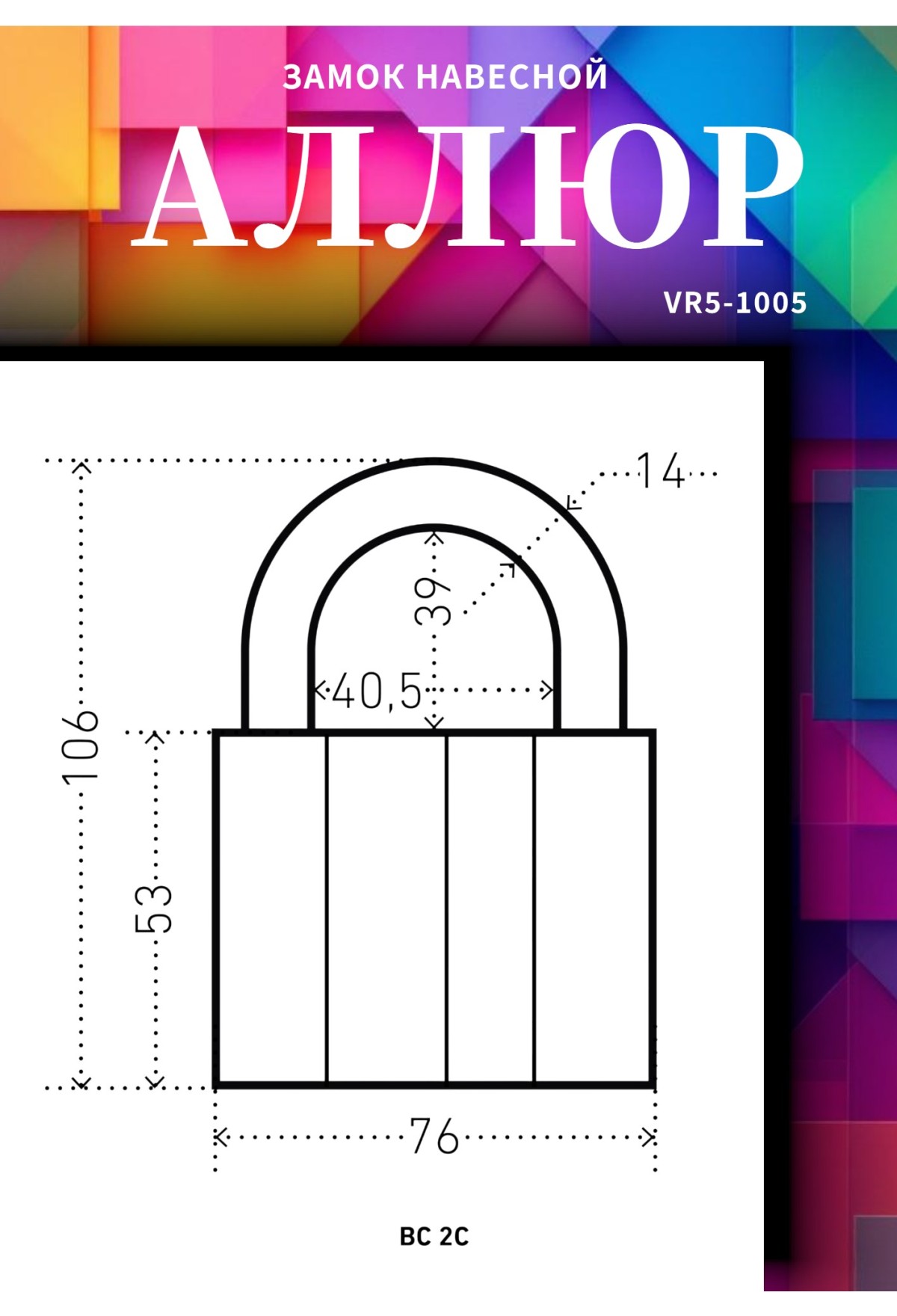 Тип: навесной замок общего назначения повышенной прочности.