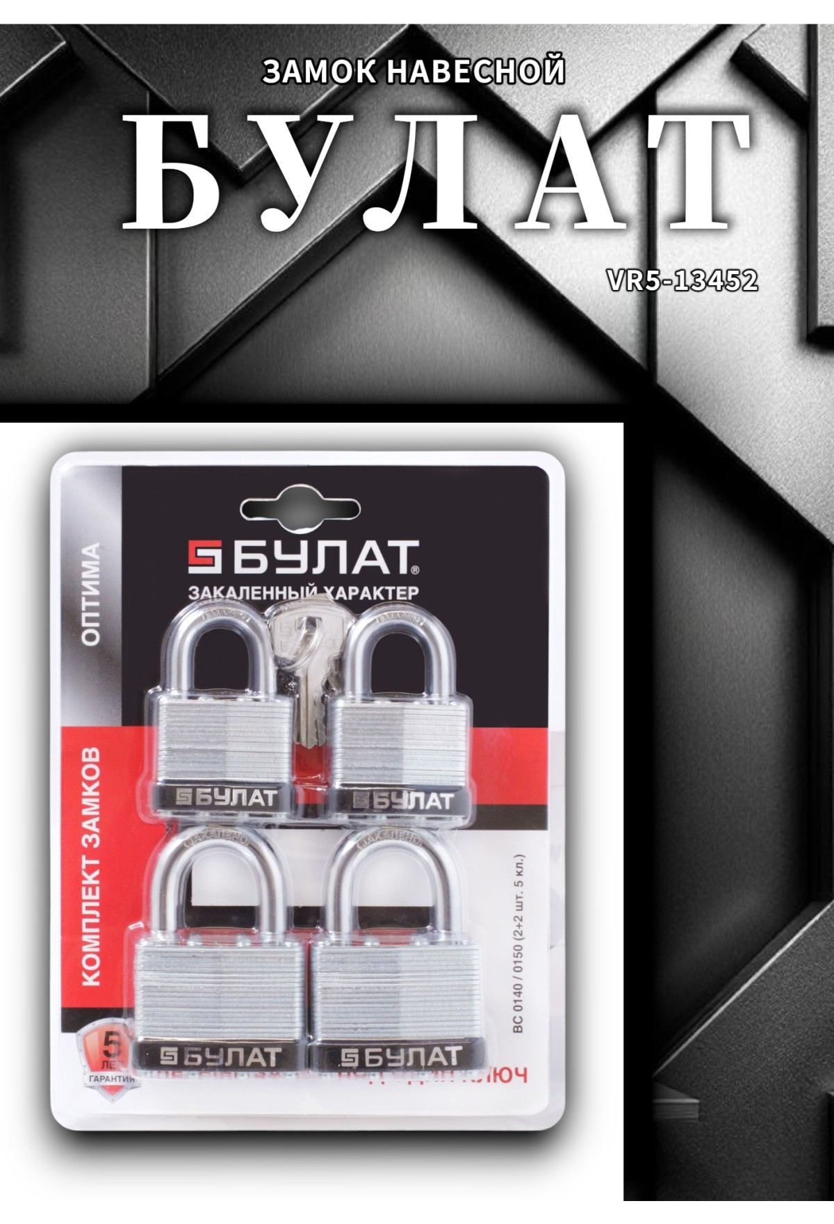 Навесной замок БУЛАТ VS‑01400150 (под один ключ, комплект 4 шт.)