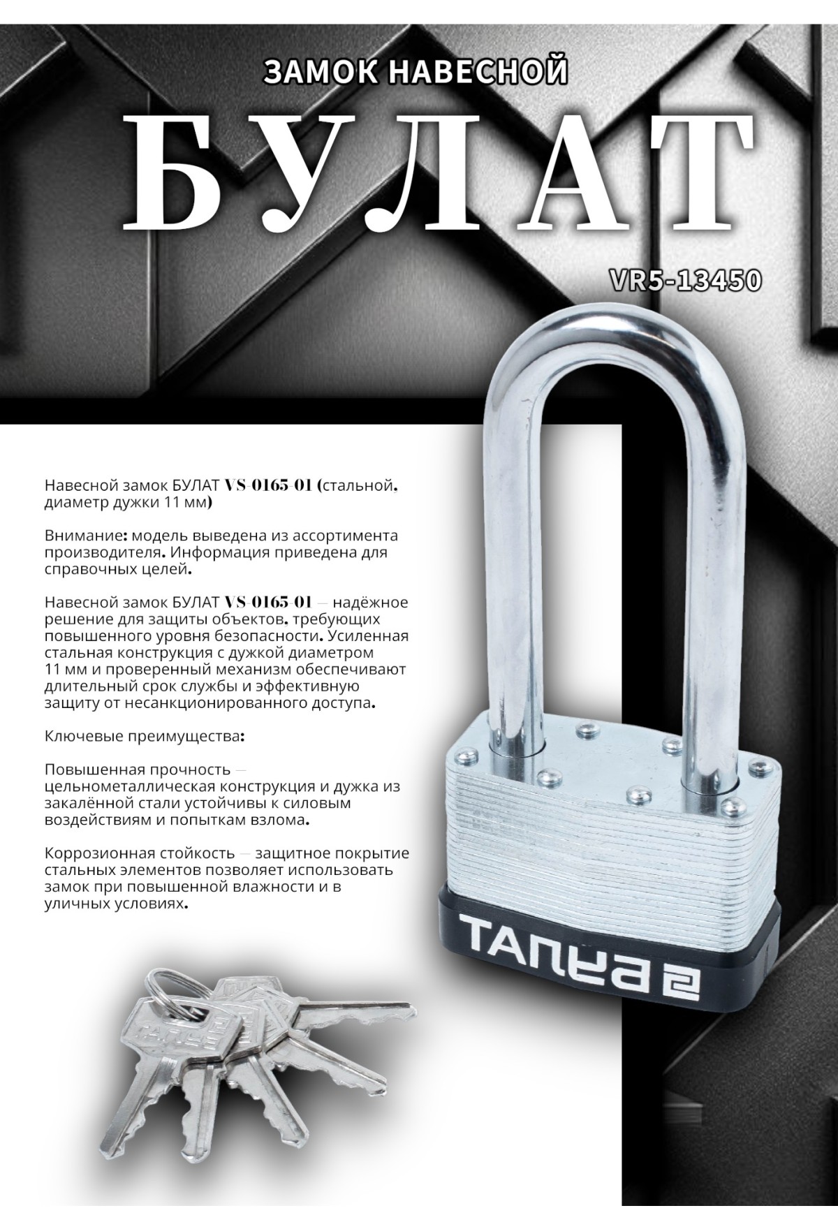 Почему выбирали навесной замок БУЛАТ VS‑0165‑01 (11 мм)