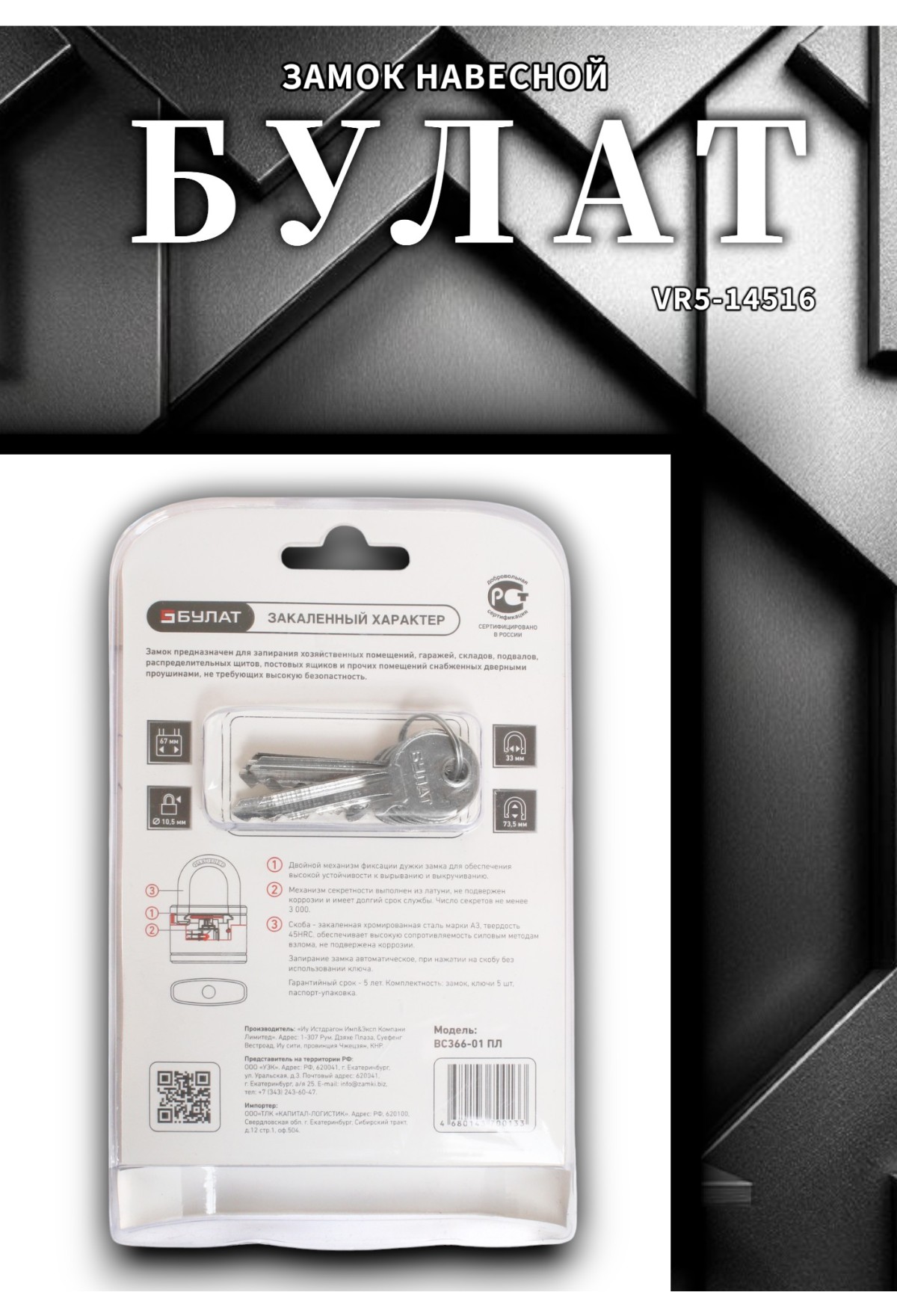 Почему стоит выбрать навесной замок БУЛАТ VS‑366‑01 PL