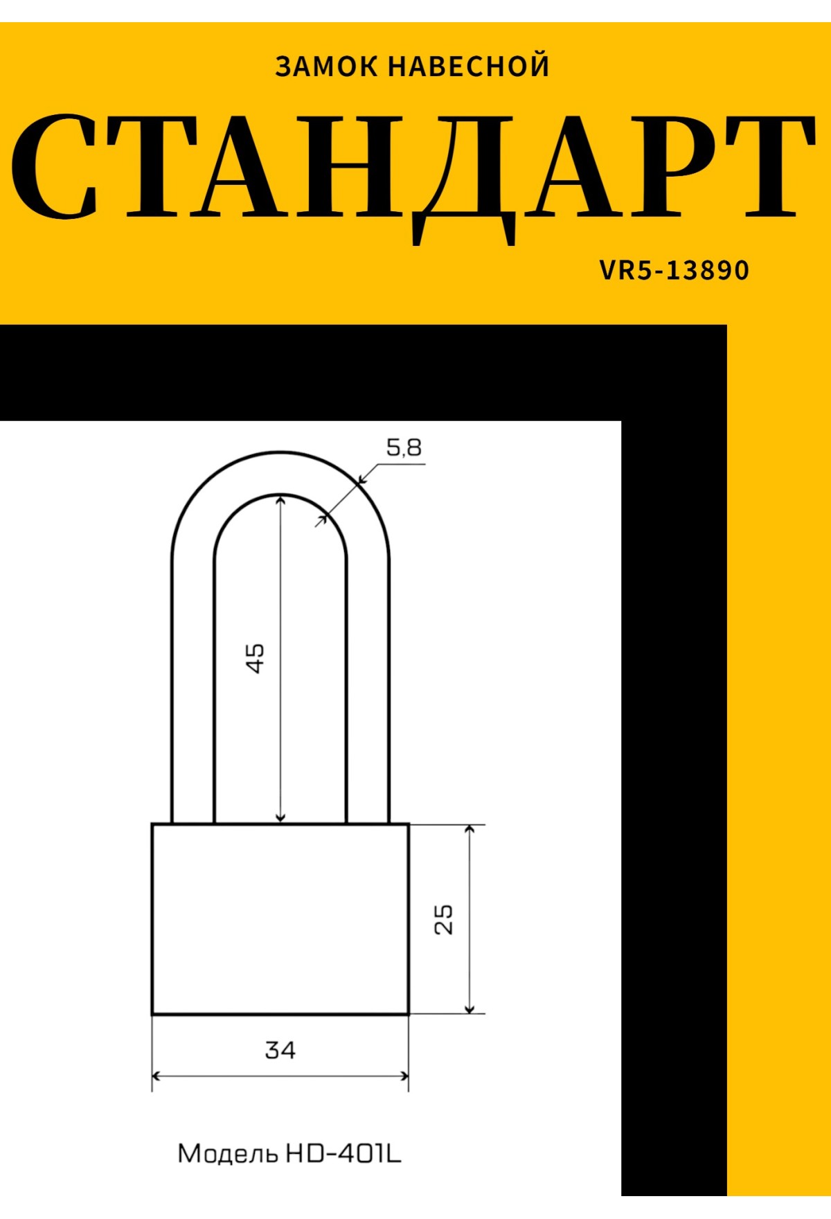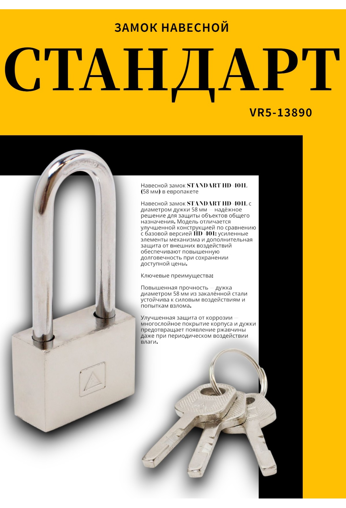 Навесной замок STANDART HD‑401L (58 мм) в европакете