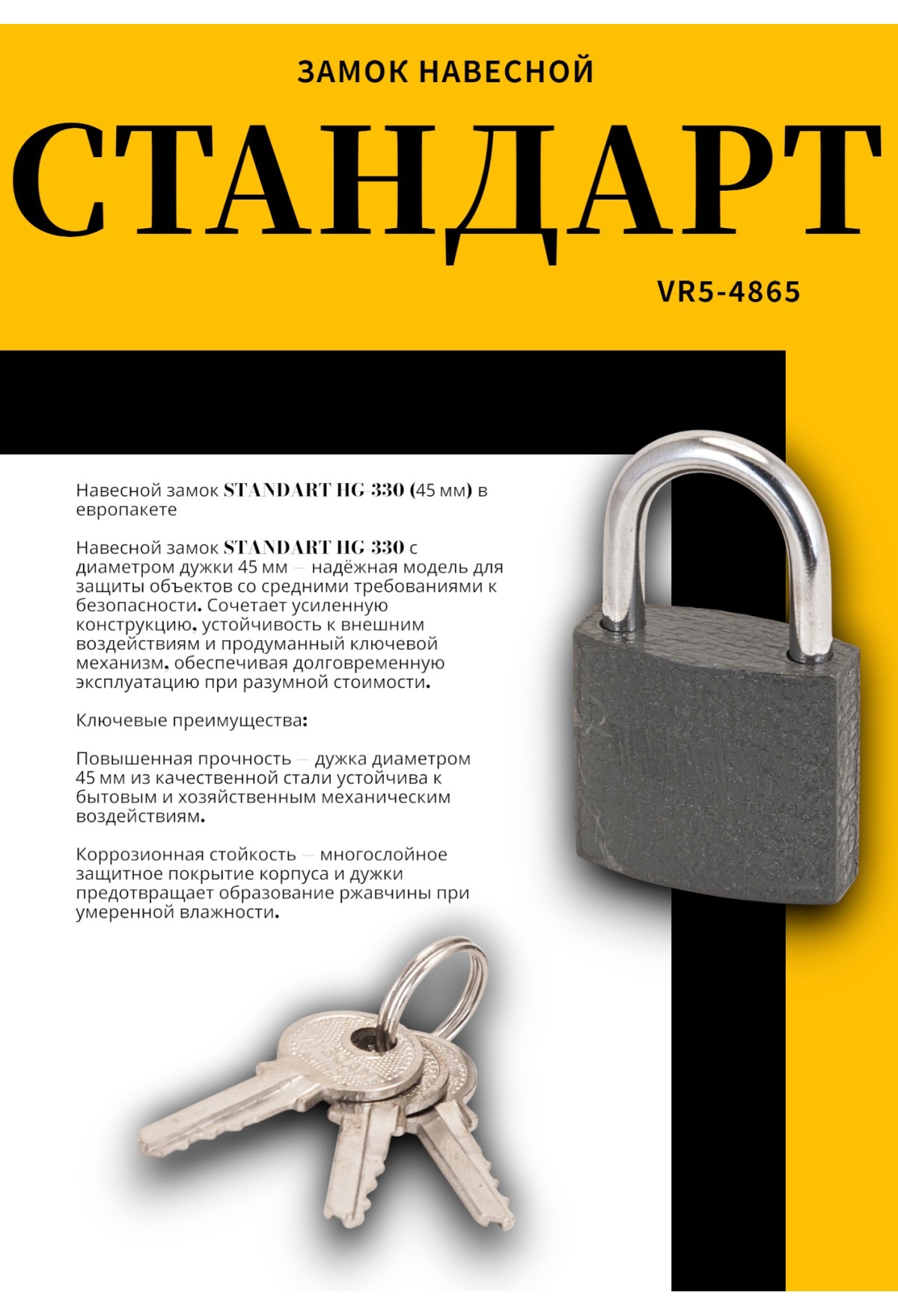 Почему стоит выбрать навесной замок STANDART HG‑330 (45 мм)