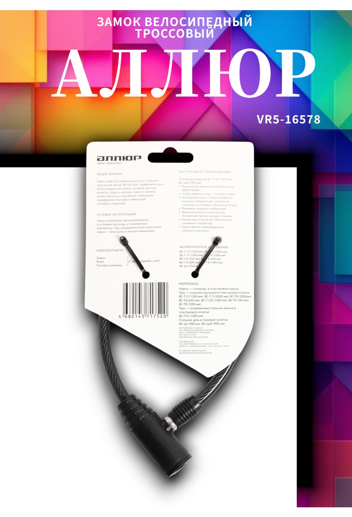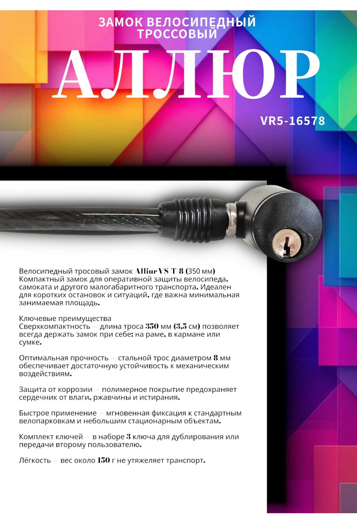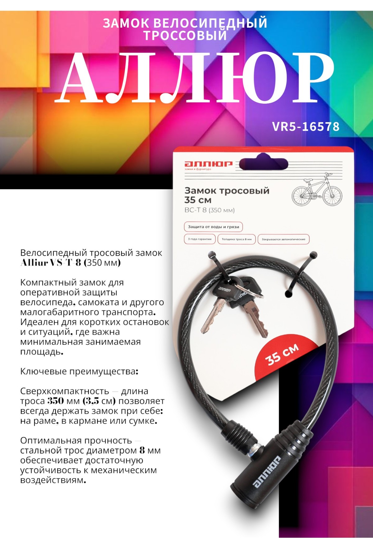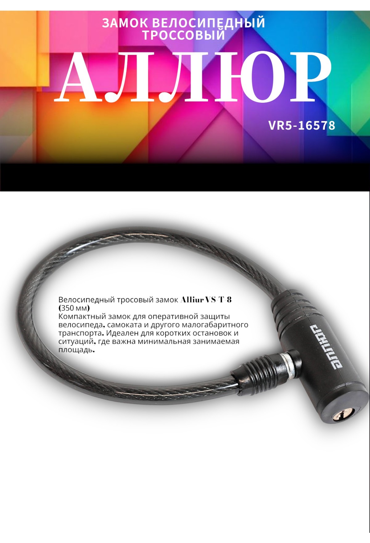 Велосипедный тросовый замок Alliur VS‑T‑8 (350 мм)